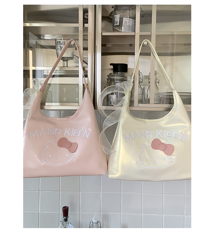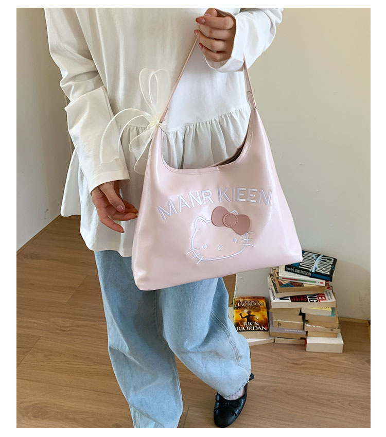 한국 소프트 걸 만화 토트 백 여성 새 도착 KT 고양이 올매치 원숄더 언더암백 대형 핸드백 자수스토어 가기