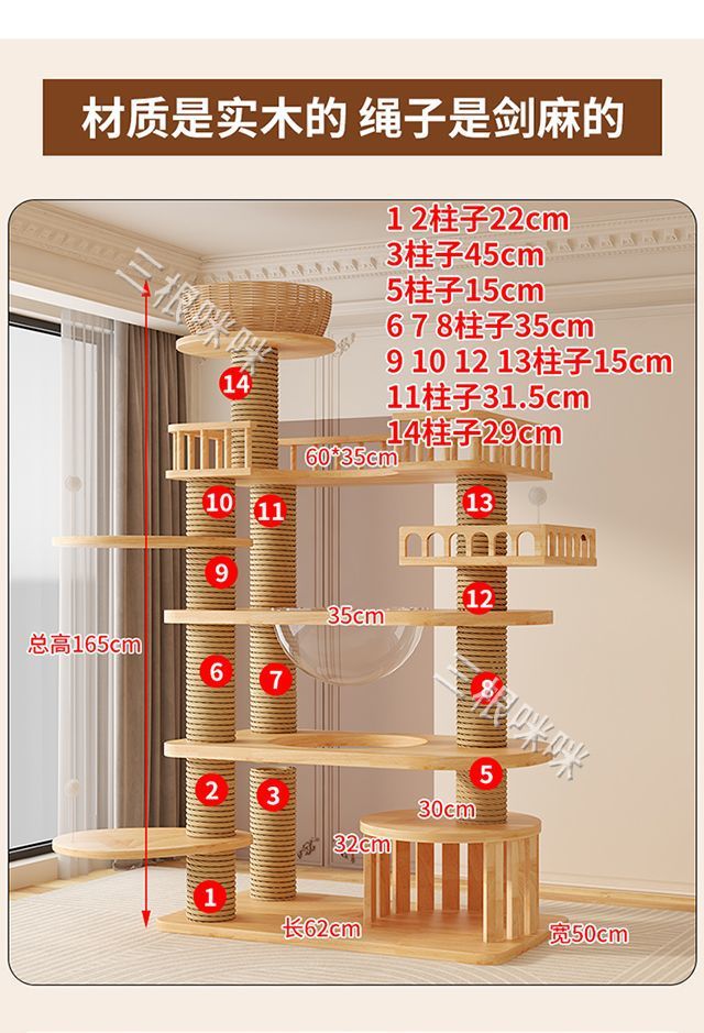 고양이 클라이밍 프레임 원목 고양이 둥지 및 고양이 트리 일체형 고급 대형 Ragdoll 메인 캐나다 고양이 클라이밍 프레임 원목 소형스토어 가기