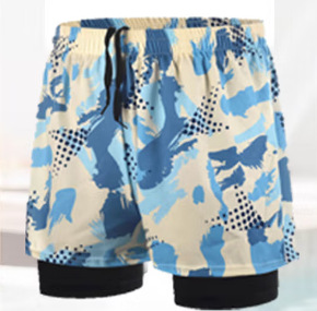 국경 간 수영 트렁크 스포츠 트렁크 더블 레이어 남자 달리기 스포츠 안티 당황스러운 느슨한 해변 트렁크 수영 트렁크 3601 약속