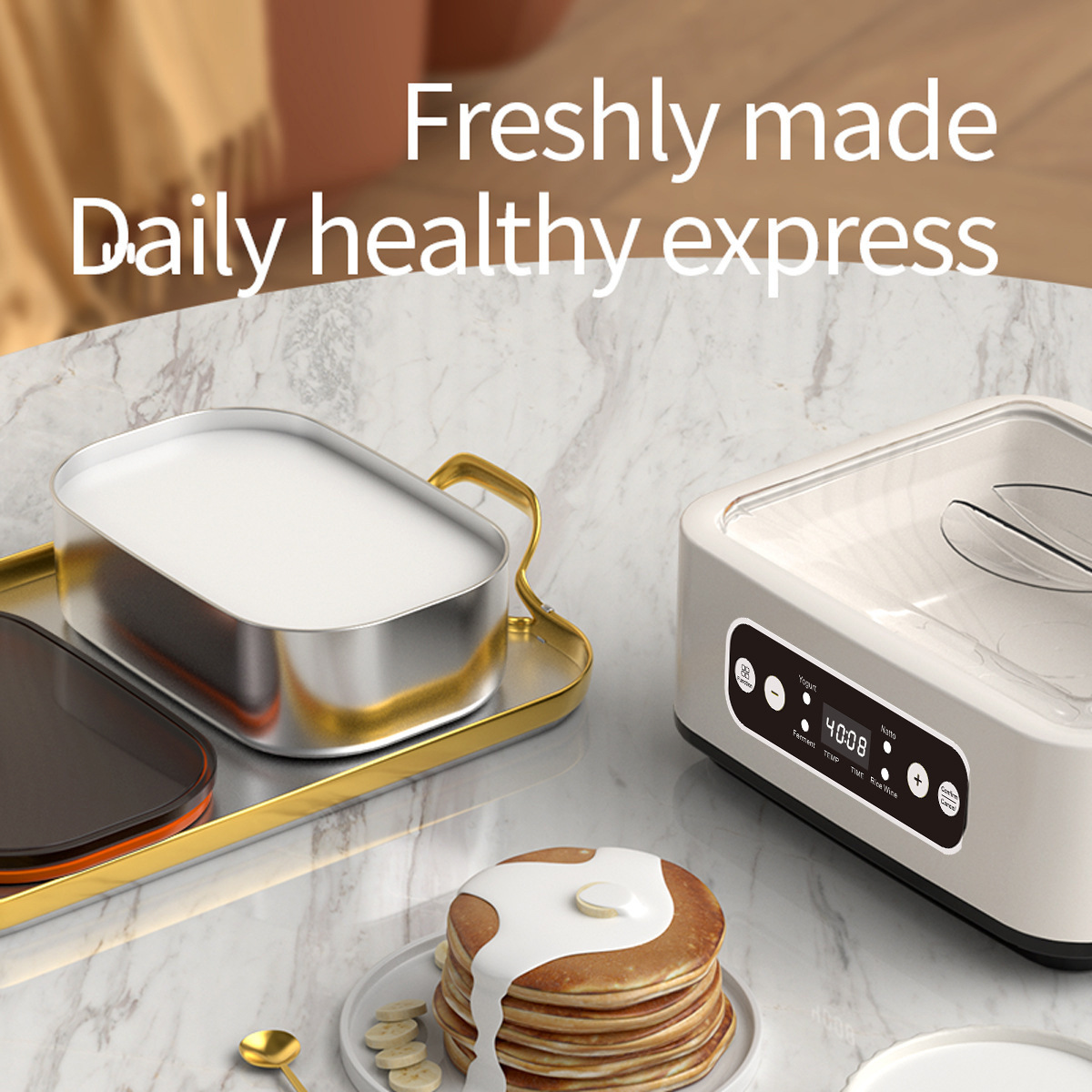 새로운 국경 간 유럽과 미국의 로고없는 요구르트 기계 사각형 1.6L 가정용 빵 발효 기계 아이스크림 요구르트 푸딩스토어 가기