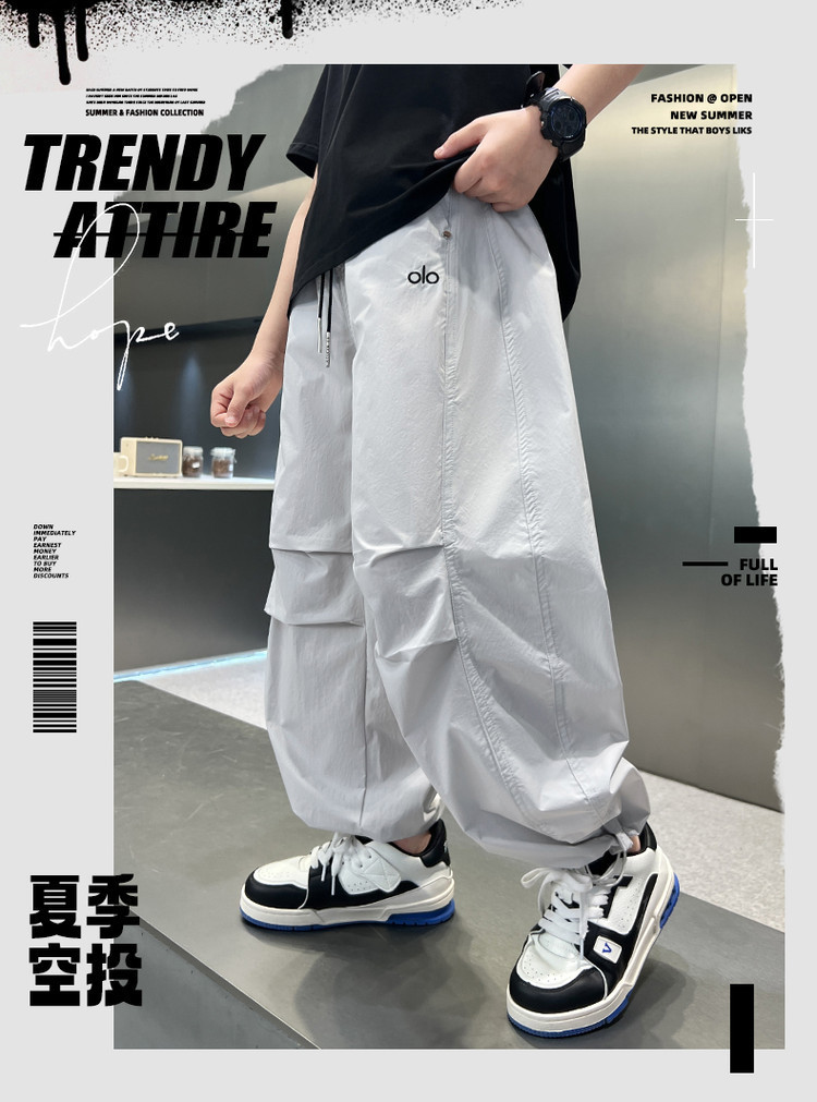 국경을 넘는 소년 바지 여름 얇은 5-15 세 소년 유행 어린이 작업복 한국 스타일 캐주얼 모기 방지 바지스토어 가기