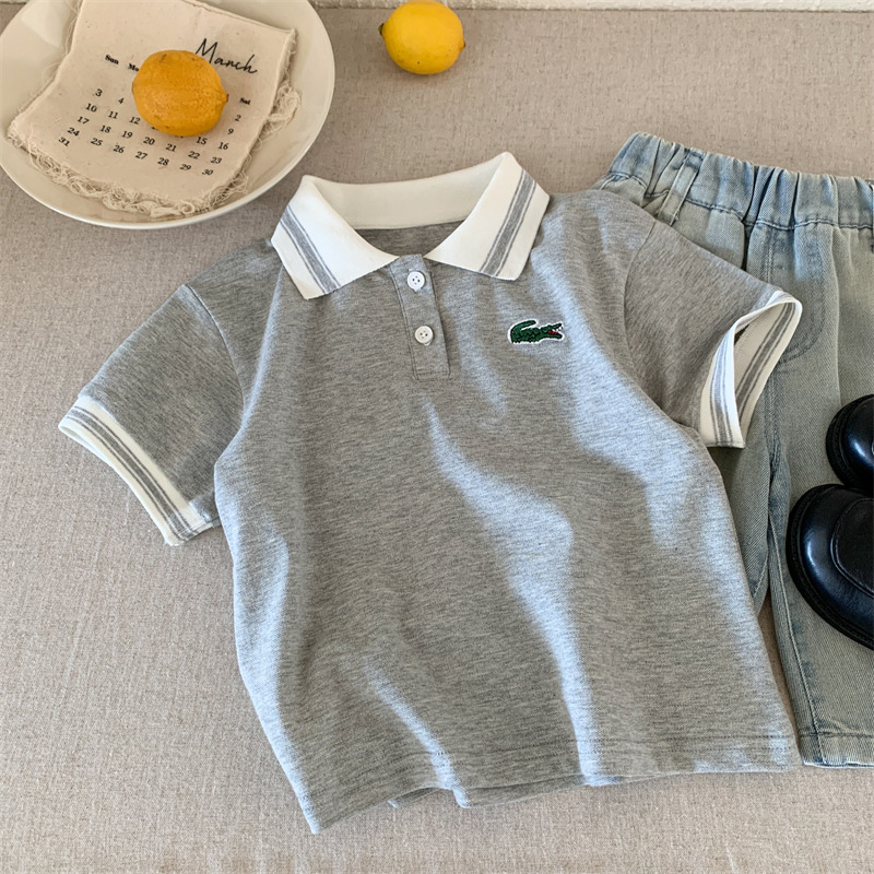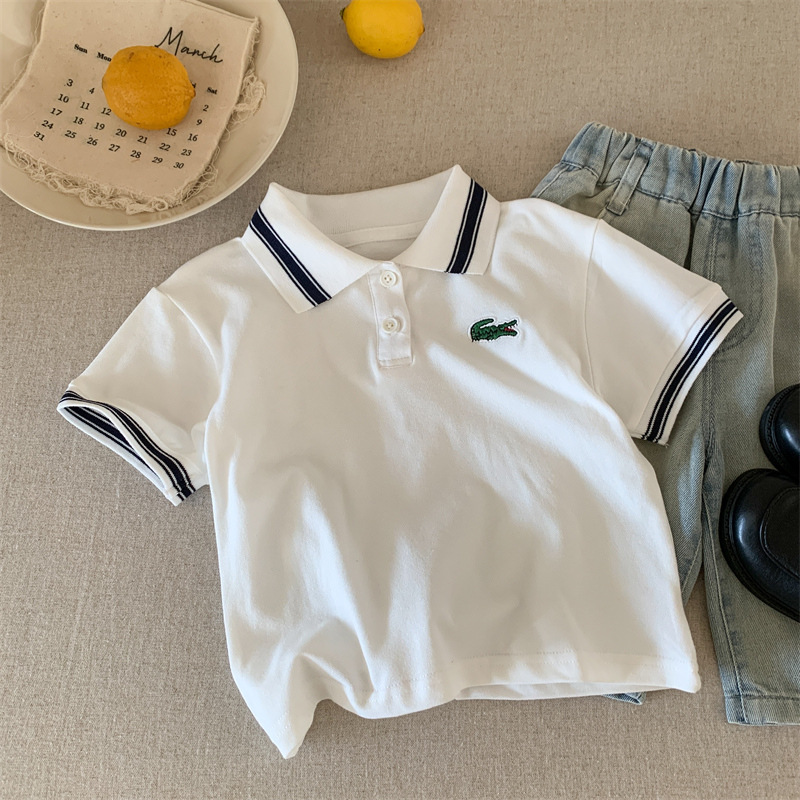 여름 새로운 2025 소년 및 어린이 폴로 셔츠 아기 웨스턴 스타일 캐주얼 반팔 소년 티셔츠 어린이 트렌디 탑