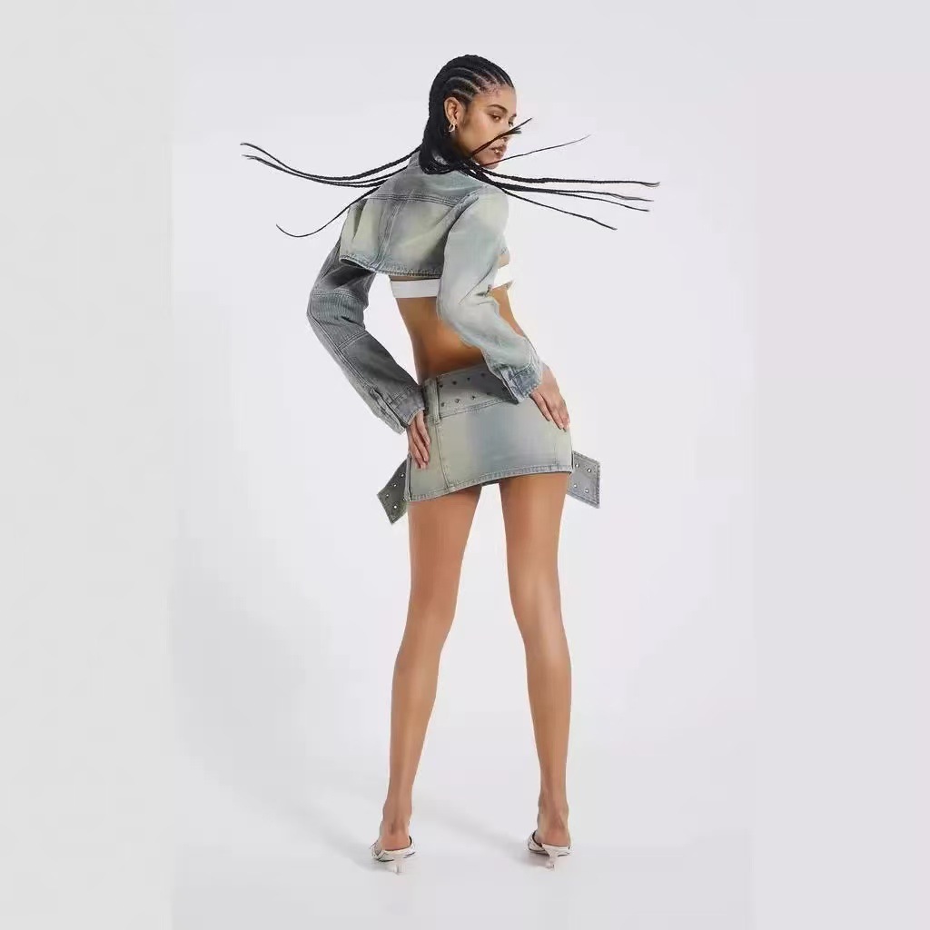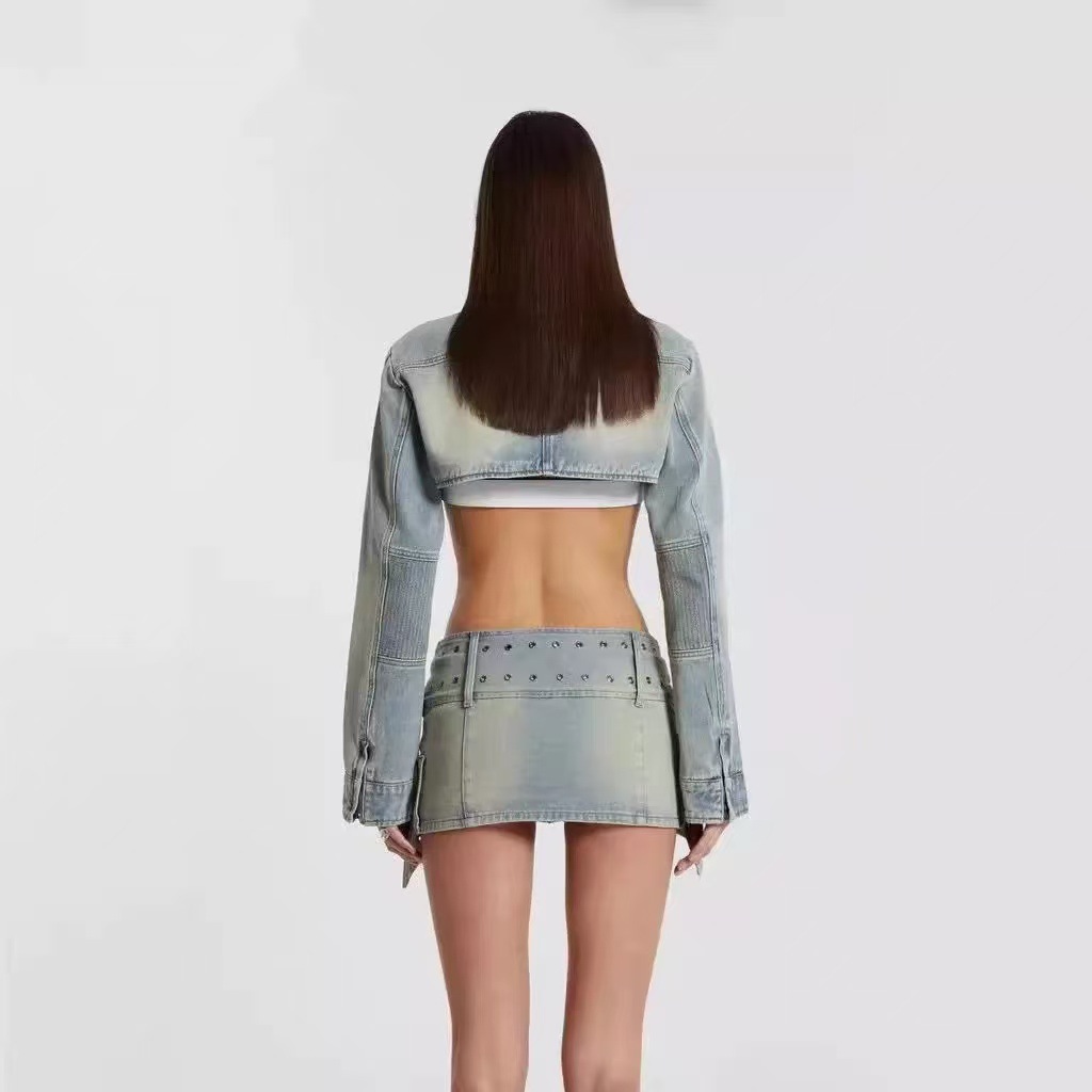 Jaded London Millennium Spice Girl 섹시한 빈티지 세척 긴 소매 오프-허리 쇼트 데님 재킷 코트 탑 여성
