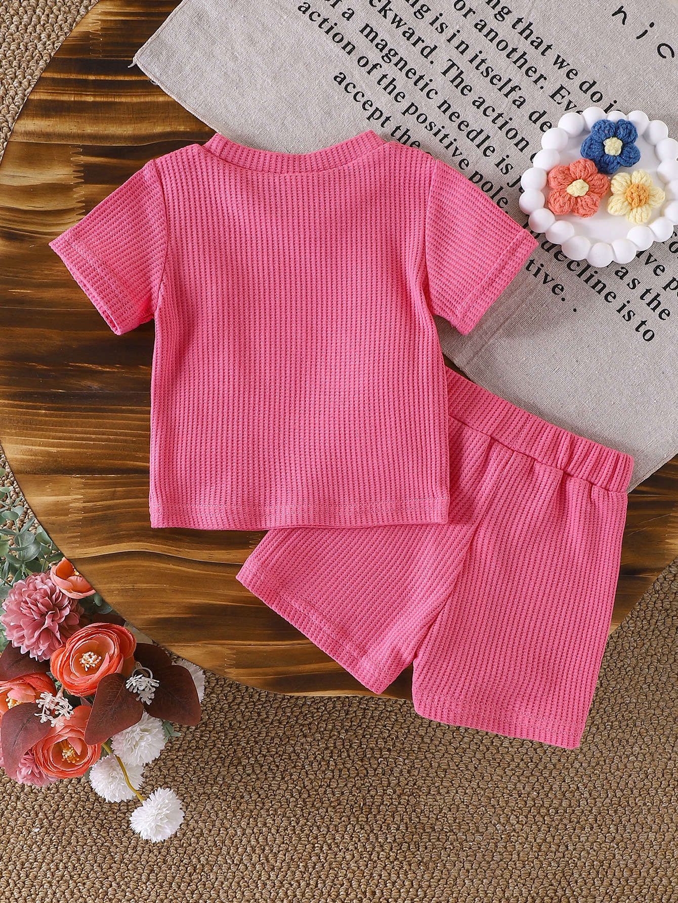 25 대외 무역 유럽과 미국 여름 귀여운 소녀 세트 단색 자수 편지 반바지 반바지 투피스 세트스토어 가기