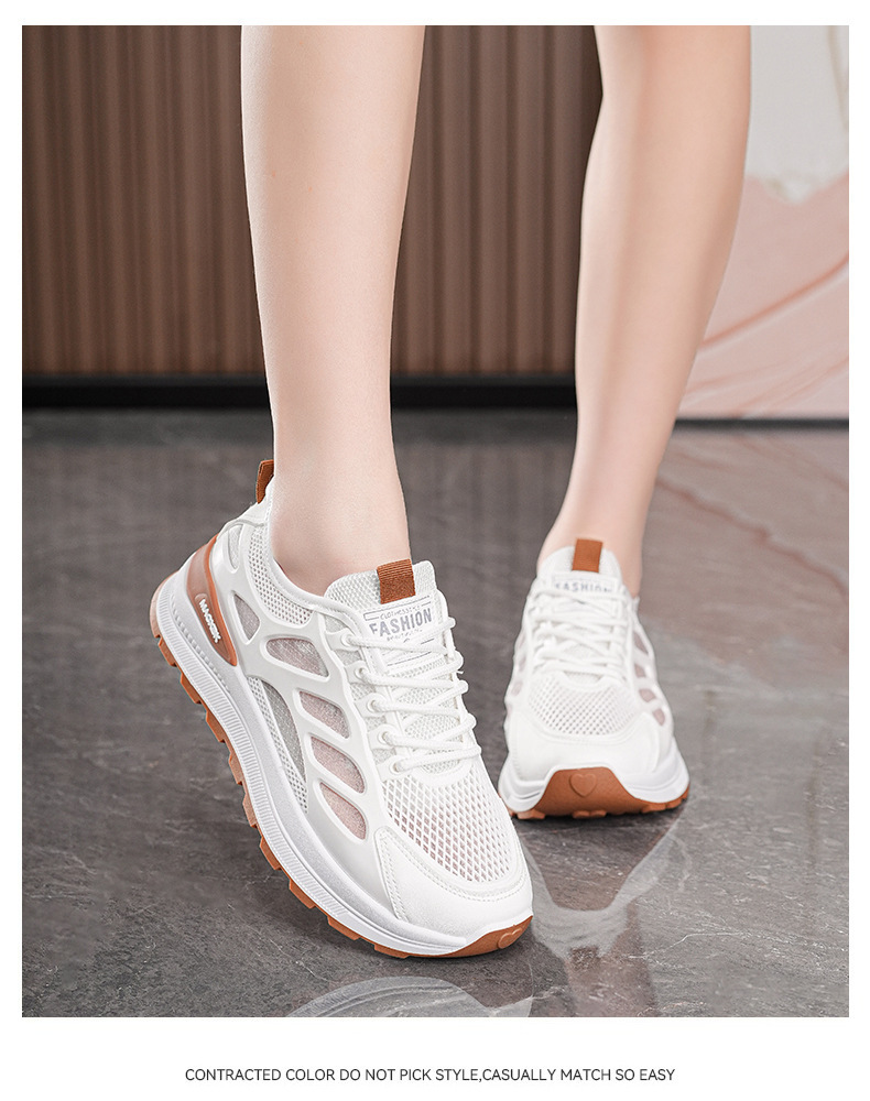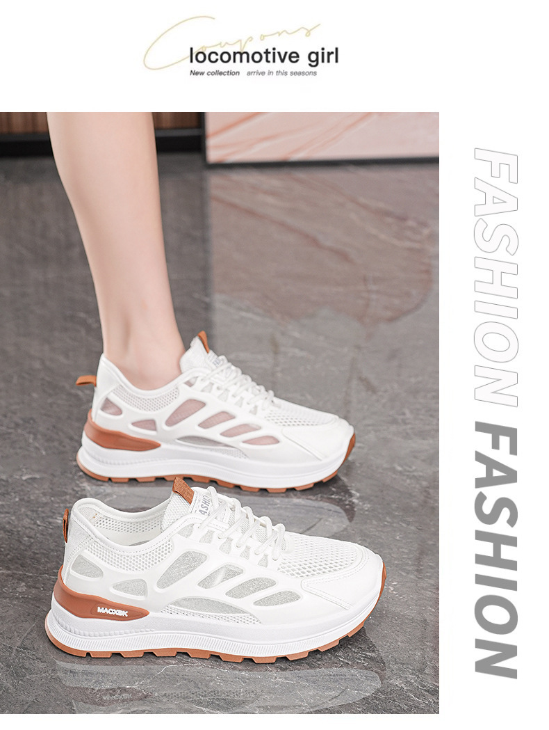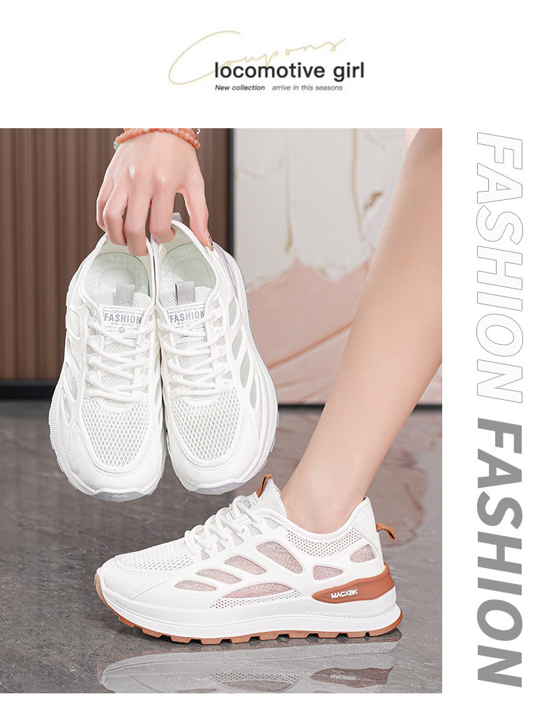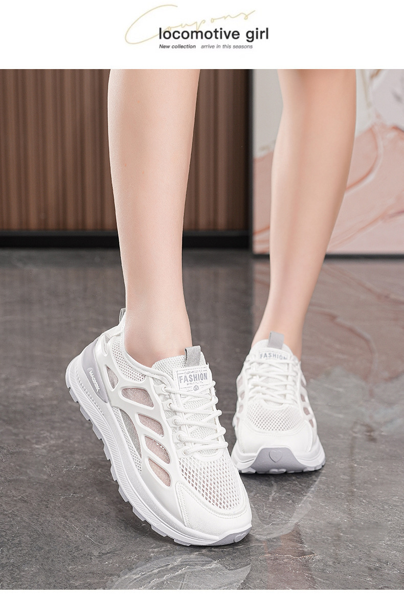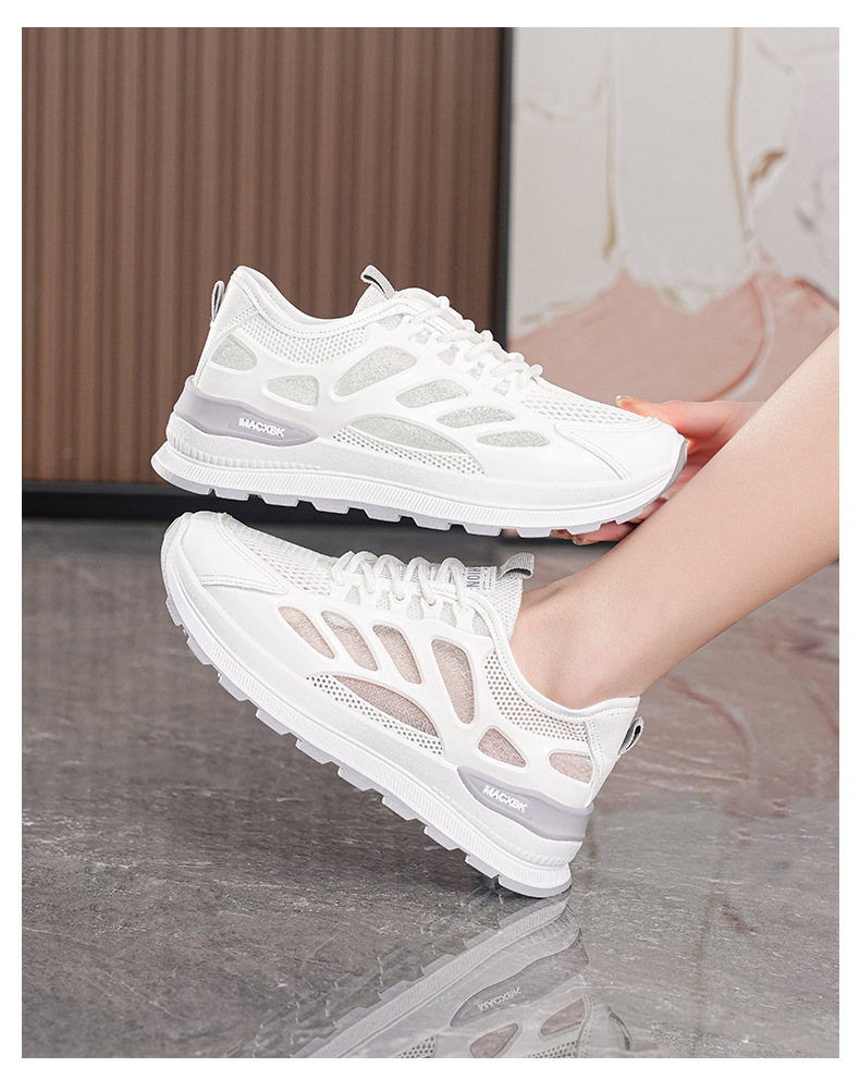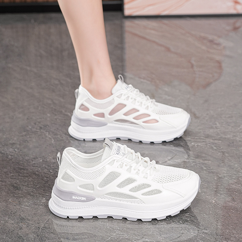 여름 여성 신발 새로운 통기성 메쉬 신발 여성 한국어 버전 다목적 흰색 신발 두꺼운 밑창 스포츠 신발 여성을위한 캐주얼 운동화