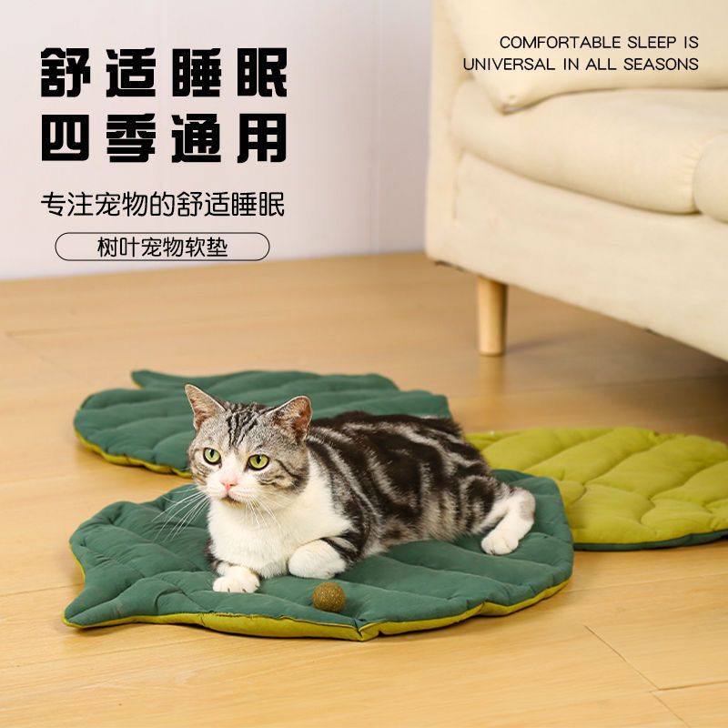 국경을 넘는 나뭇잎 모양 고양이 매트, 사계절 사용 가능, 세탁 가능, 고양이와 강아지 모두 사용 가능, 냉기 방지, 양면 사용 가능