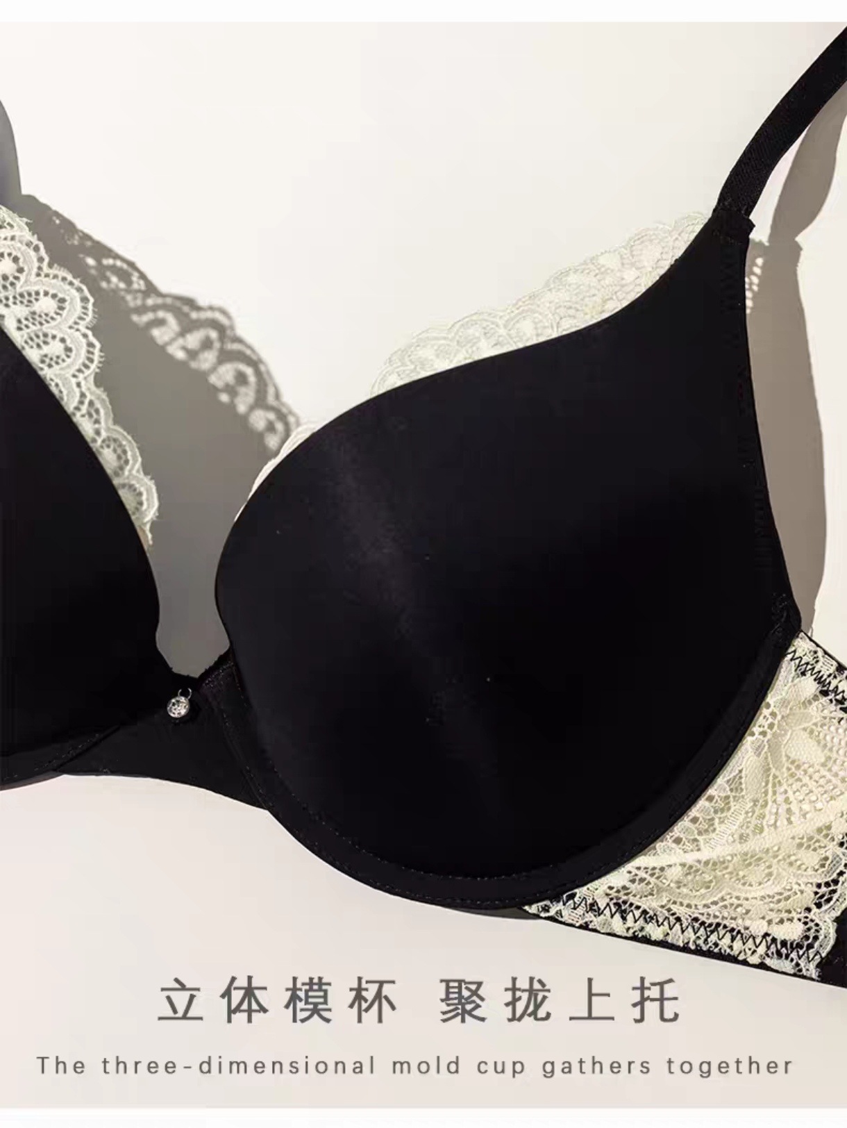프랑스 스타일 무광택 속옷 여성의 작은 가슴 푸시 업 섹시한 레이스 블랙 브라 빅 소프트 스틸 링 브래지어 세트스토어 가기