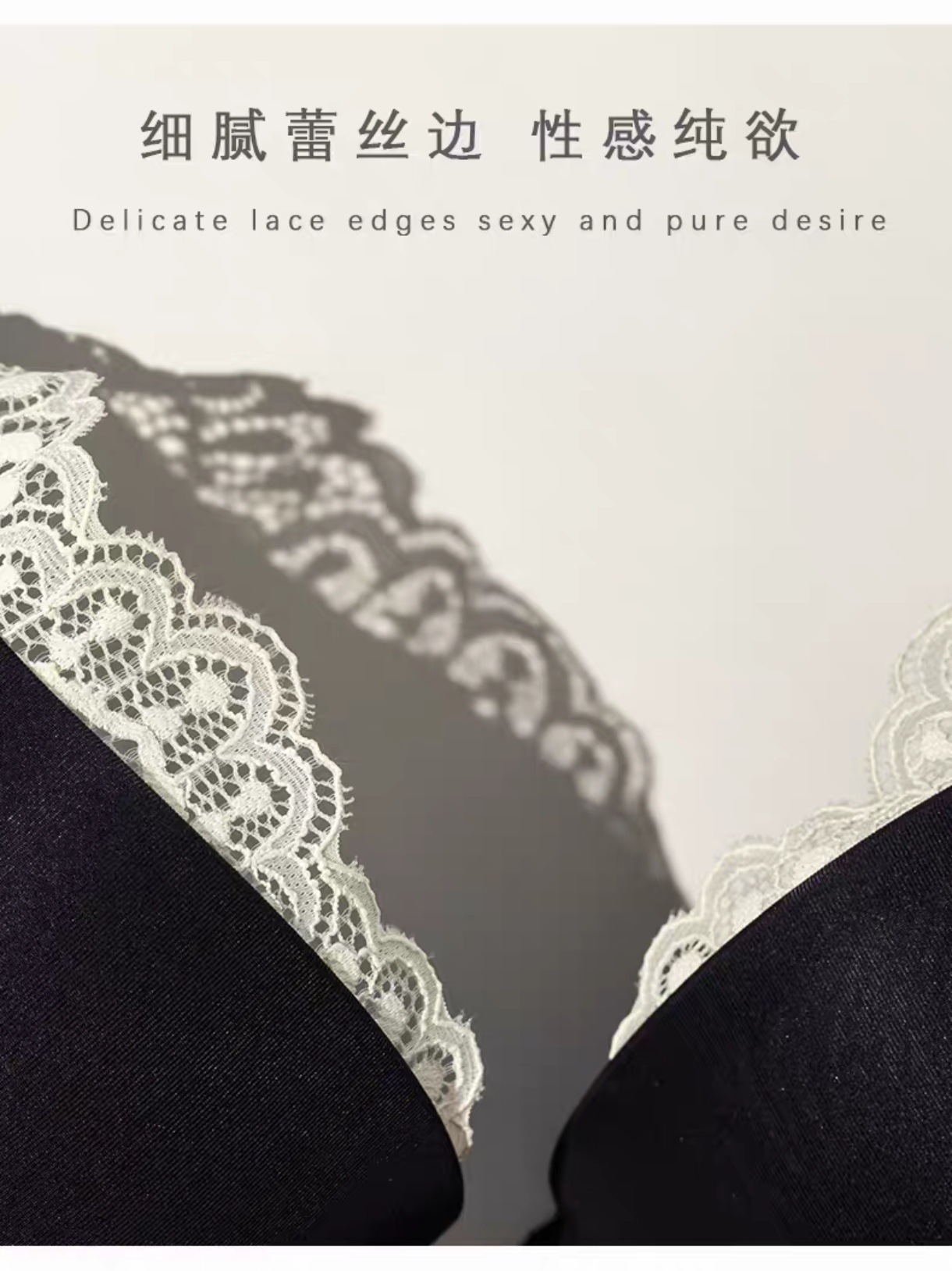 프랑스 스타일 무광택 속옷 여성의 작은 가슴 푸시 업 섹시한 레이스 블랙 브라 빅 소프트 스틸 링 브래지어 세트