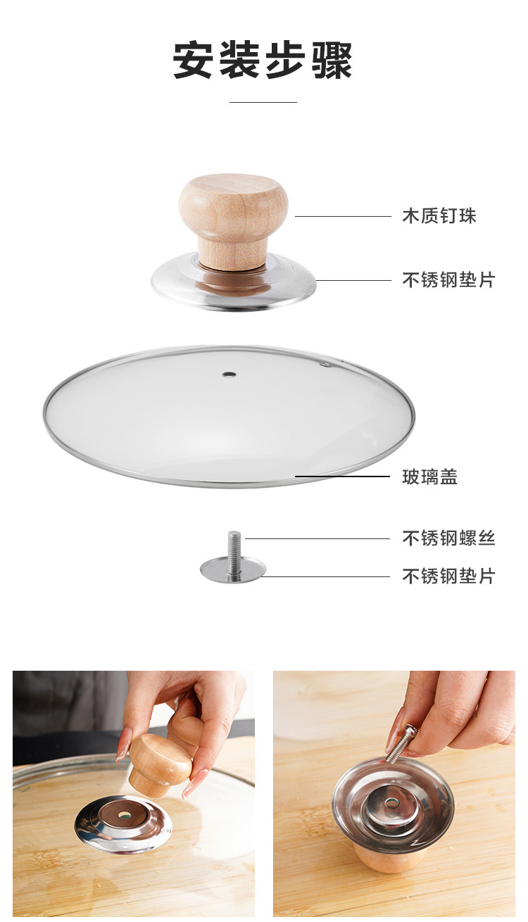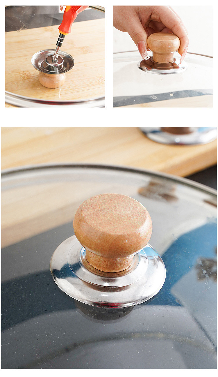 나무 냄비 뚜껑 손잡이 냄비 뚜껑 상단 구슬 범용 유리 뚜껑 스테인레스 스틸 뚜껑 상단 뚜껑 안티 scald 냄비 뚜껑 머리 가구스토어 가기