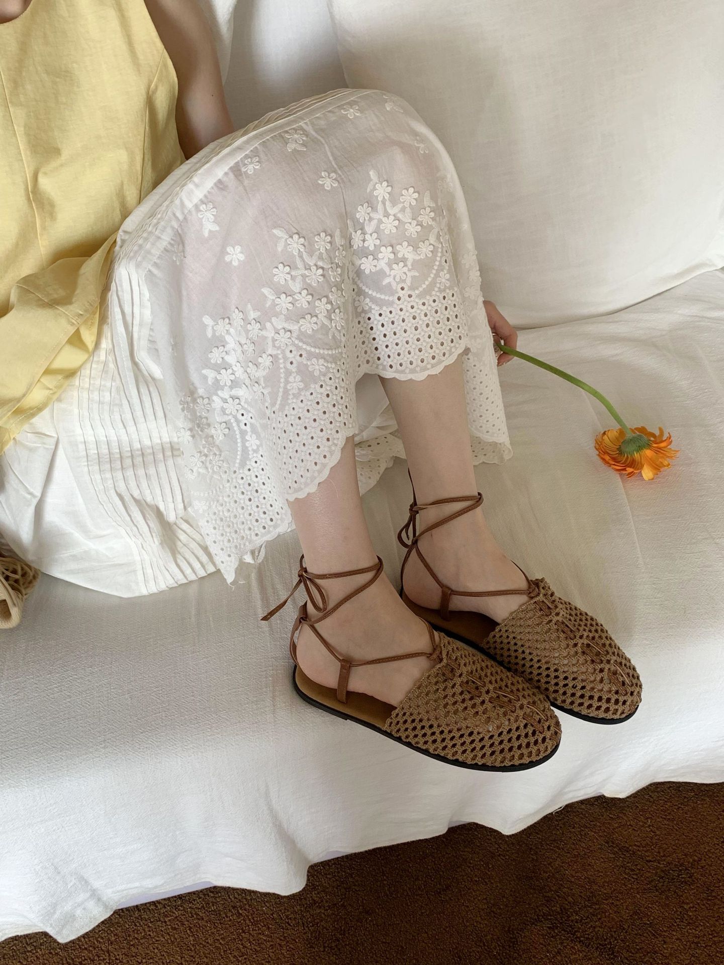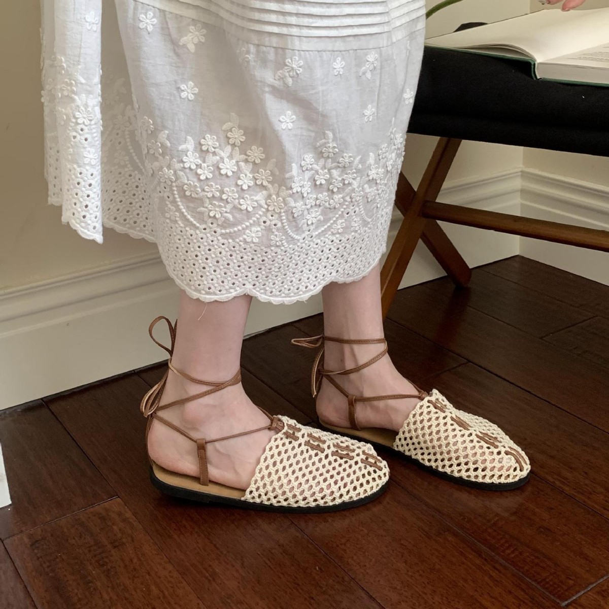 여성용 패셔너블한 로우힐 토우브레이드 슈즈, 2025년 신상 여름 슬립온 통기성 중공 샌들스토어 가기