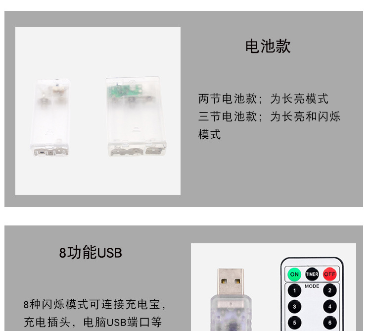 • 배터리 모델 항상 켜짐 + 깜박임(6.4m개 조명)