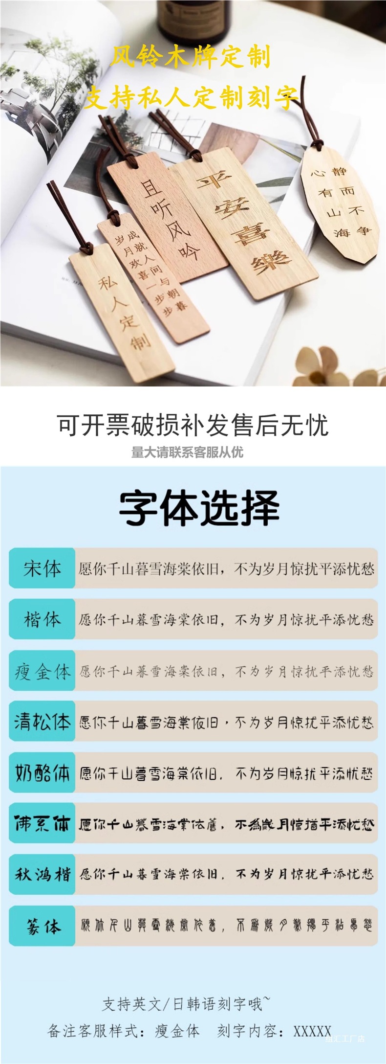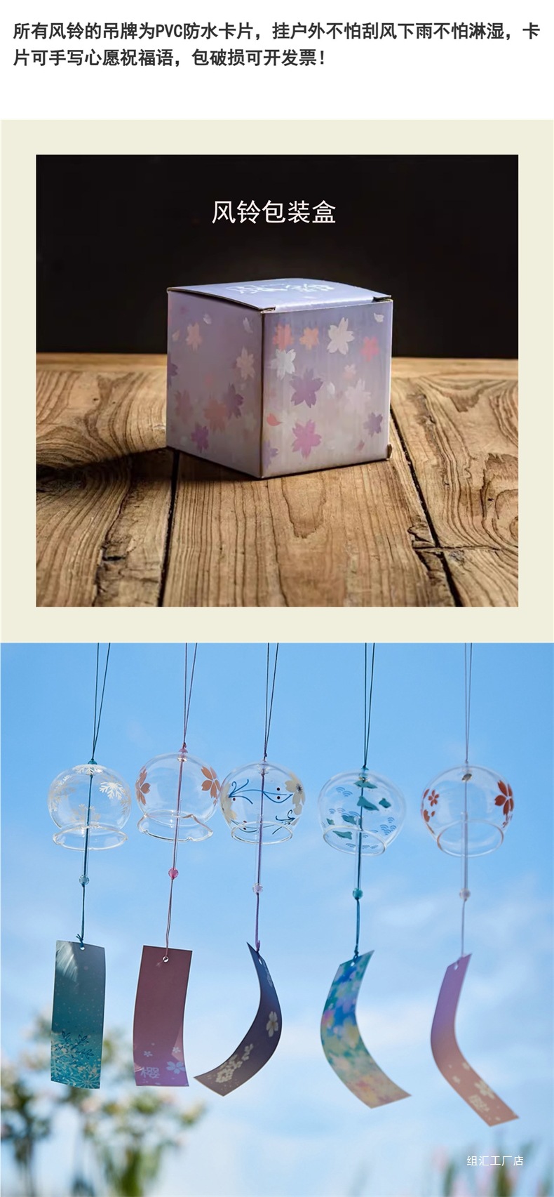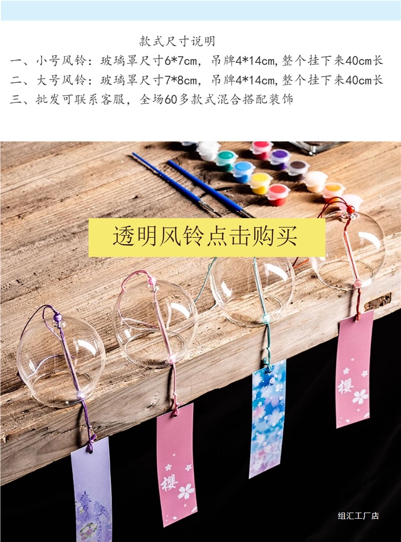 소원 바람종 침실 장식 여름 유리 투명 걸이형 대나무 나무표 책갈피 야외 정원 장식스토어 가기