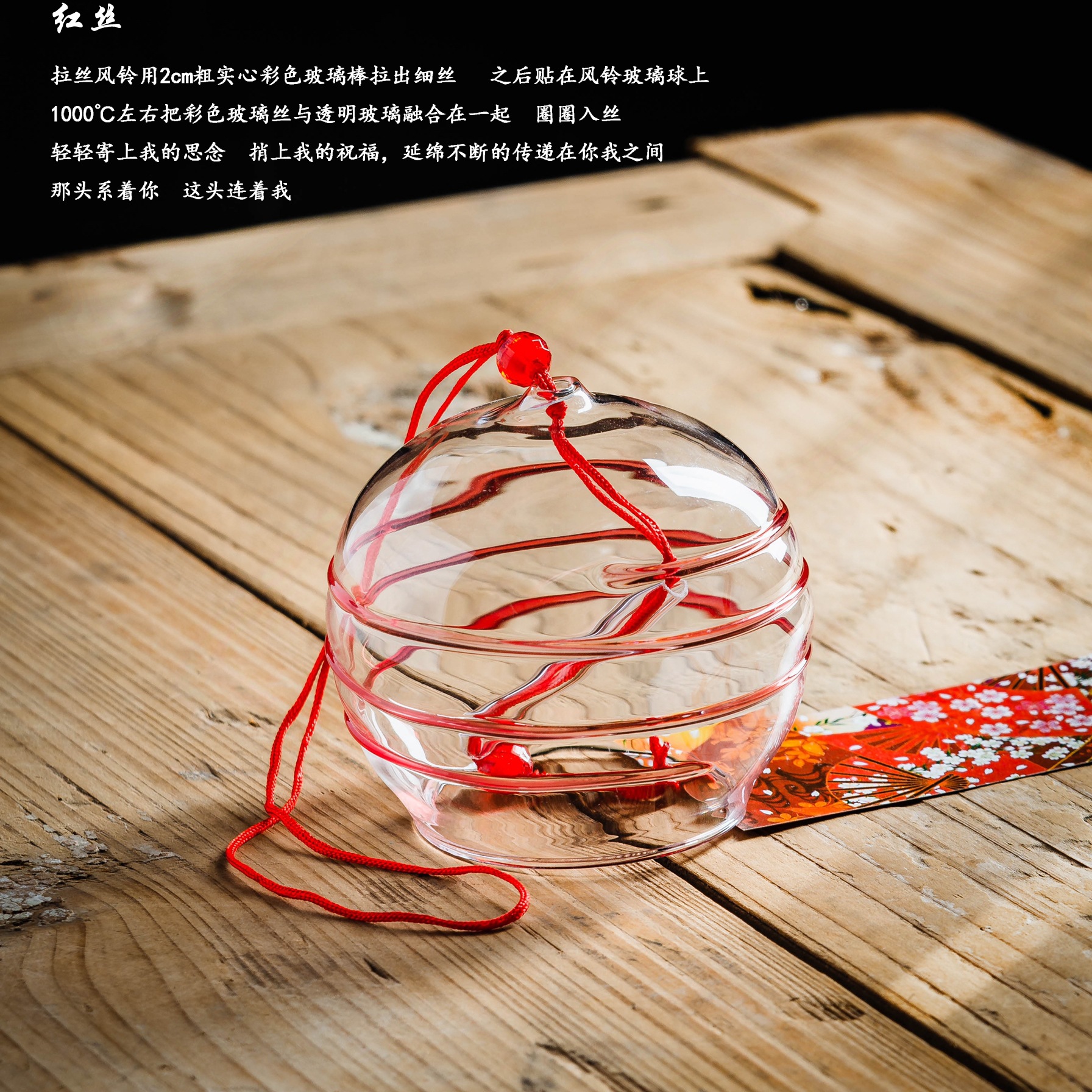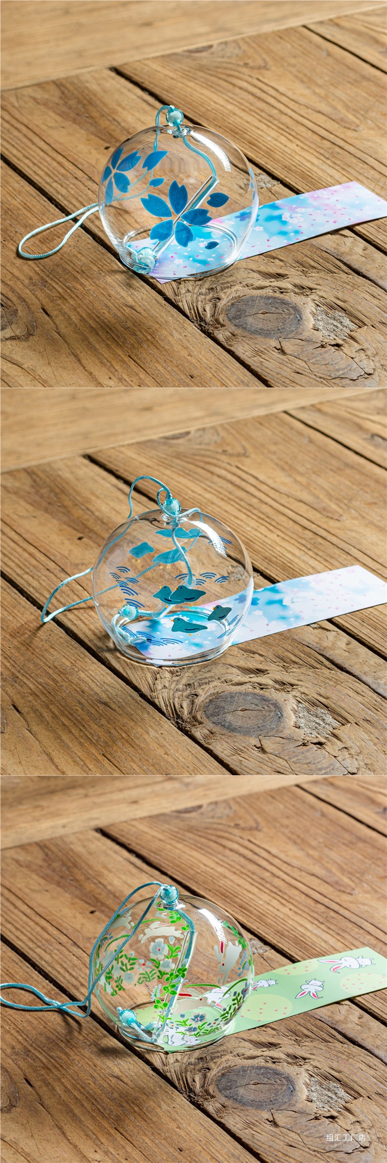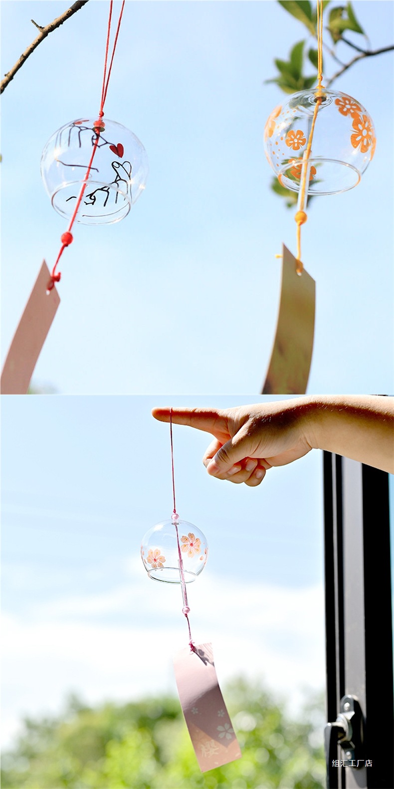 소원 바람종 침실 장식 여름 유리 투명 걸이형 대나무 나무표 책갈피 야외 정원 장식