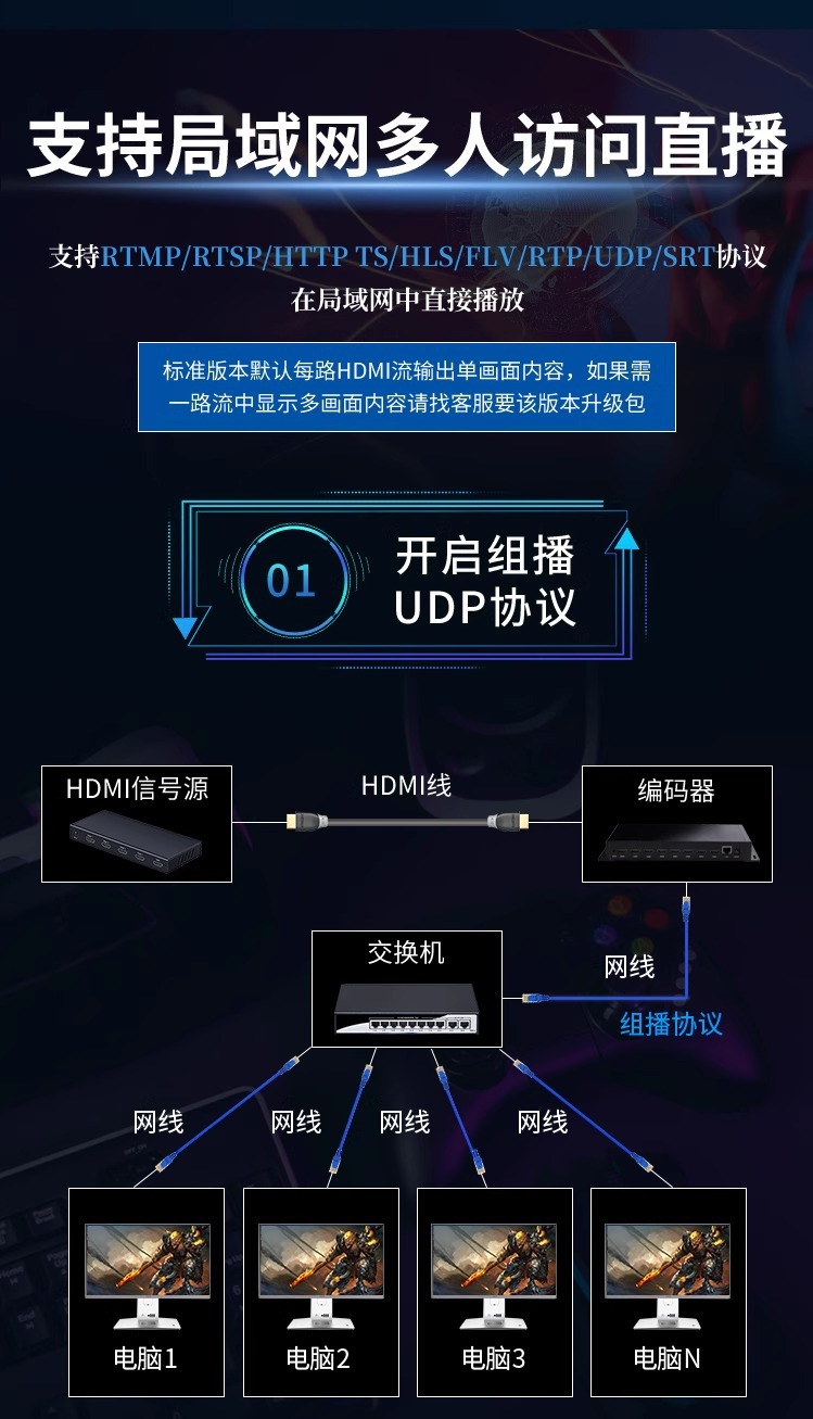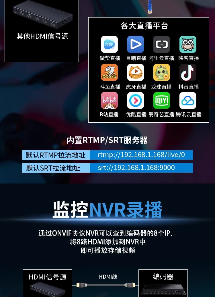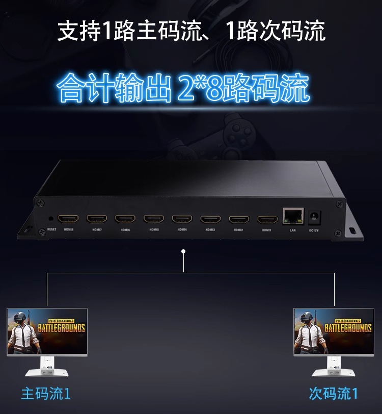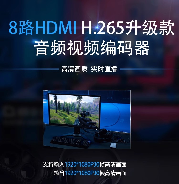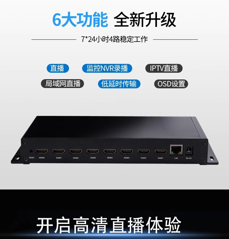 NVR에 연결된 8 방향 H.265hdmi 획득 인코더 비디오 푸셔 iptv 안정적인 라이브 컴퓨터 모니터링