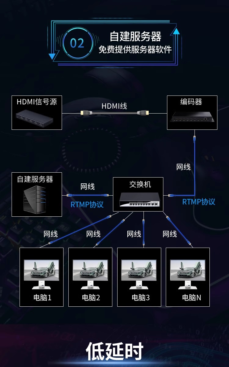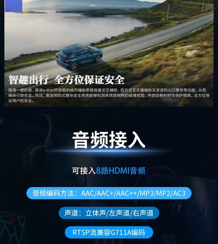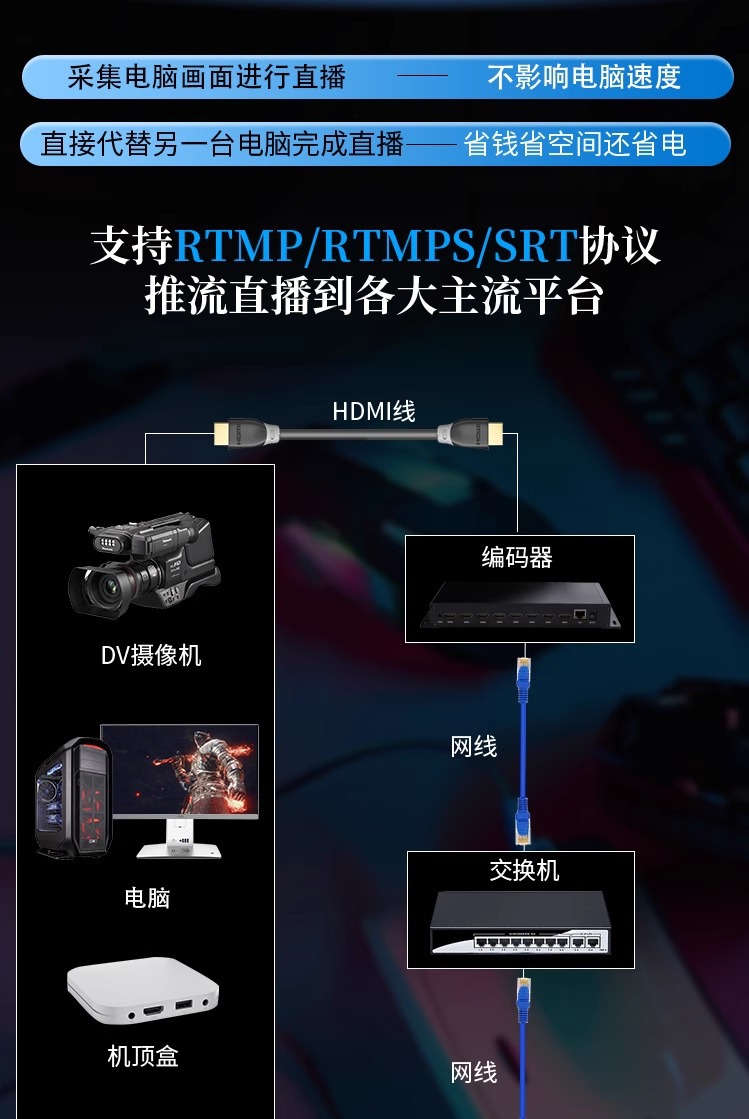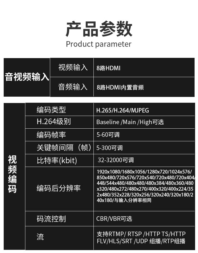 NVR에 연결된 8 방향 H.265hdmi 획득 인코더 비디오 푸셔 iptv 안정적인 라이브 컴퓨터 모니터링