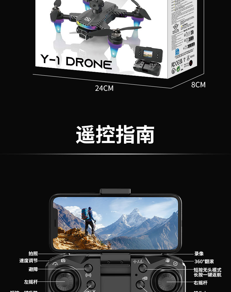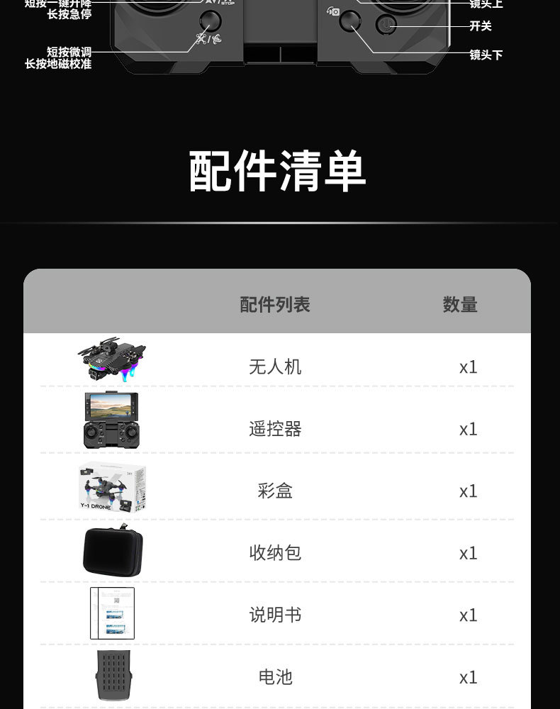 • Y1 [플래그십 항공촬영 + 광학 흐름 ESC + 4면 장애물 회피] 단일 배터리