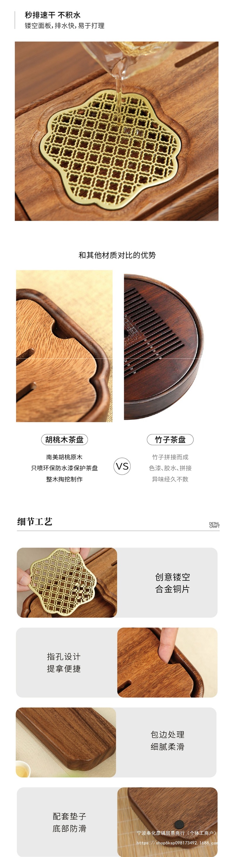 호두 새로운 중국 스타일 후만탕 물 저장 차 트레이 단단한 나무 가구 작은 건조 양조 테이블 냄비 차 테이블 트레이 차 세트스토어 가기