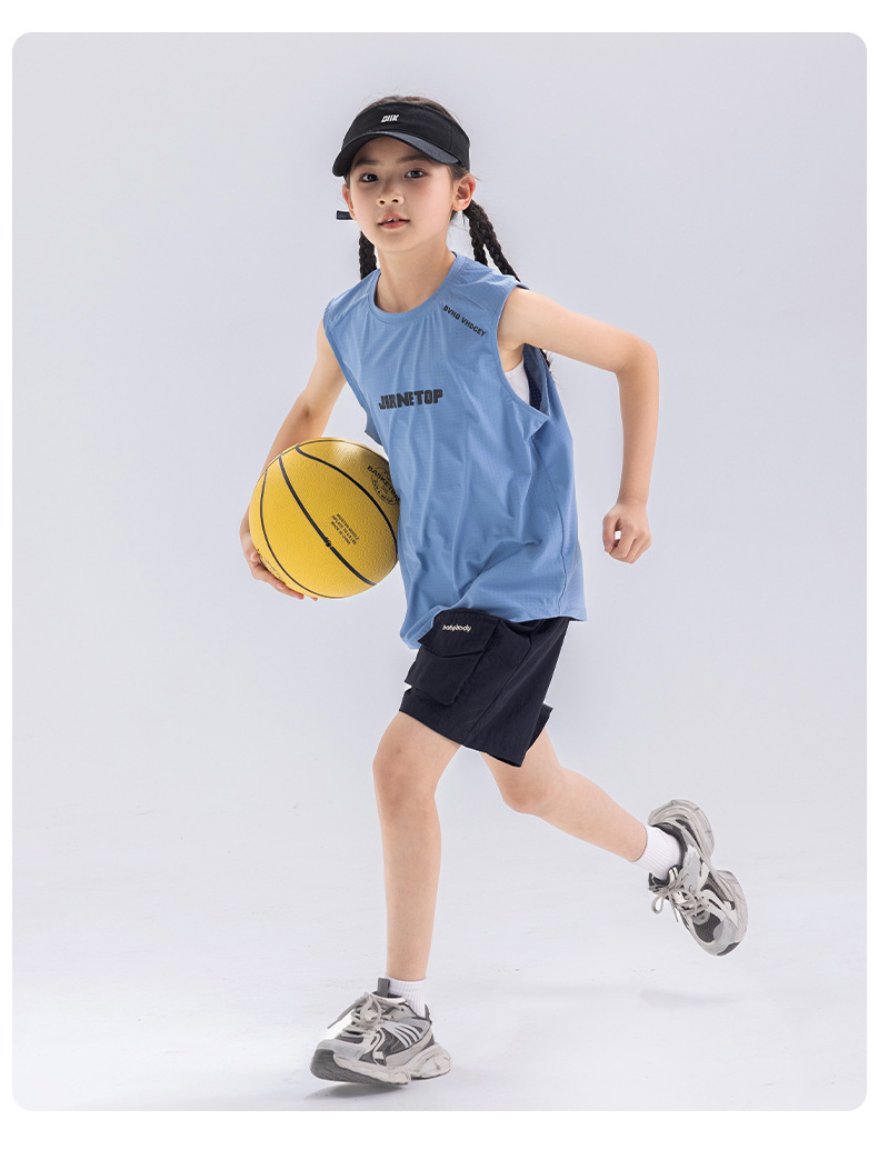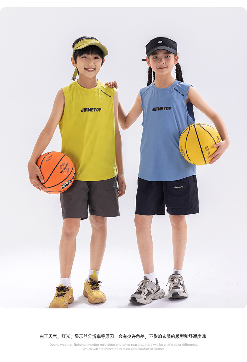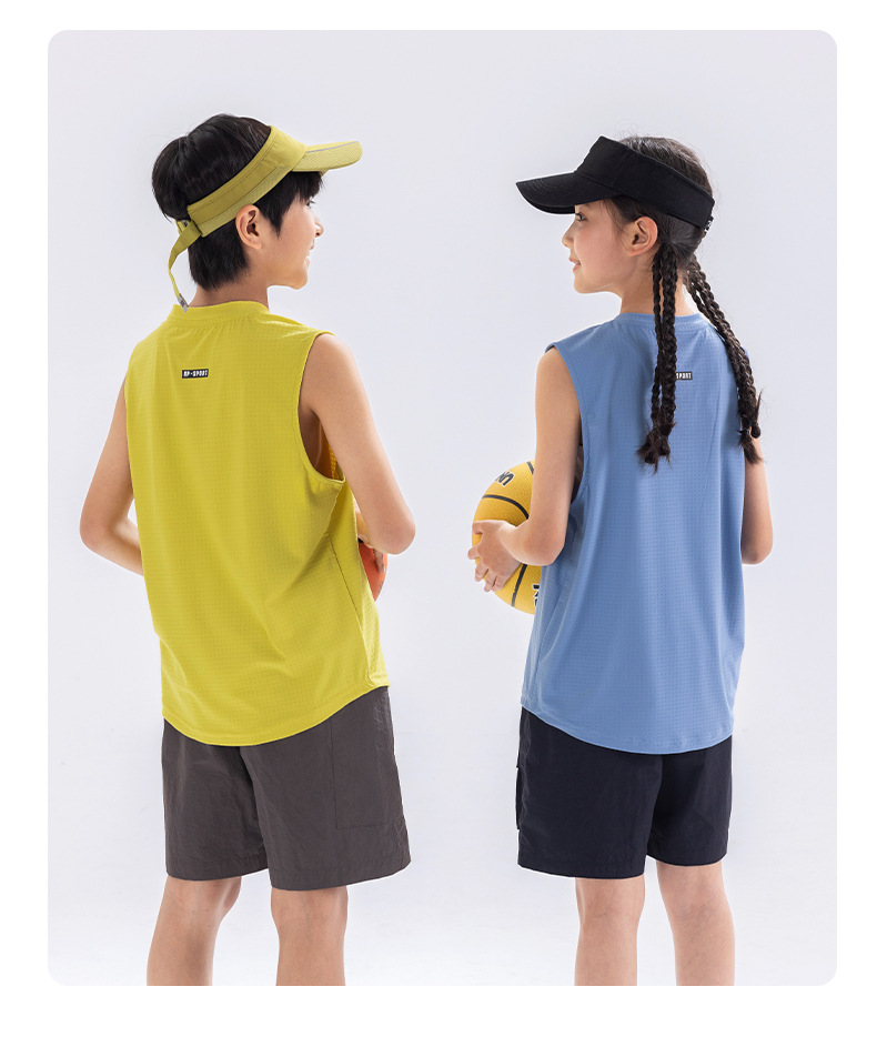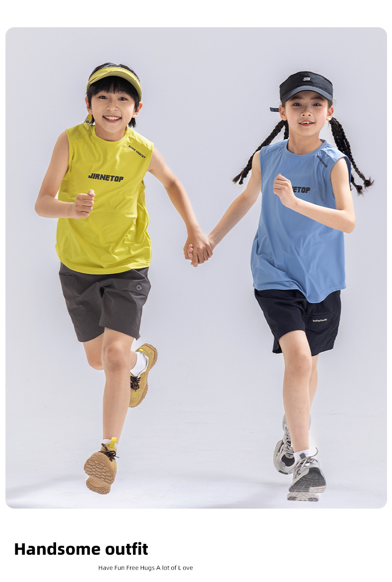 어린이 조끼 여름 2025 새로운 스타일 서양식 얇은 통기성 아이스 센스 소년과 소녀의 여름 복장 빠른 건조 허리 코트