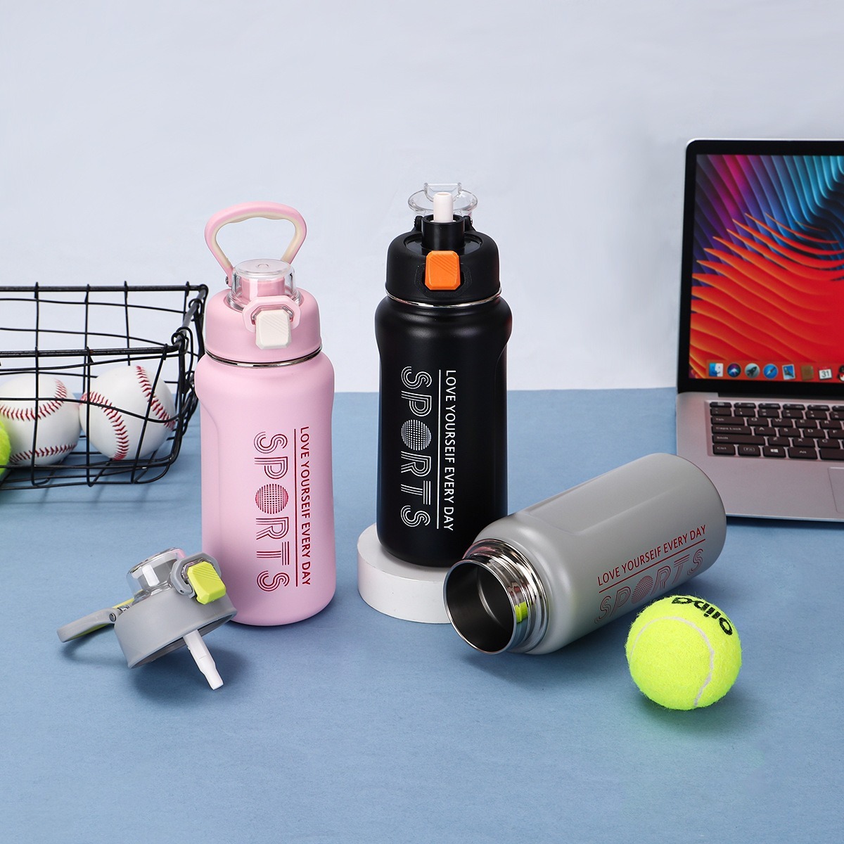 새로운 316 스테인레스 스틸 핸들 스포츠 주전자 야외 휴대용 하이킹 여행 주전자 텔레스코픽 밀짚 보온병 컵스토어 가기