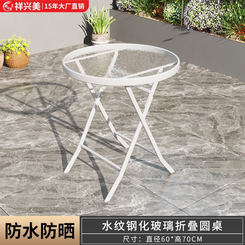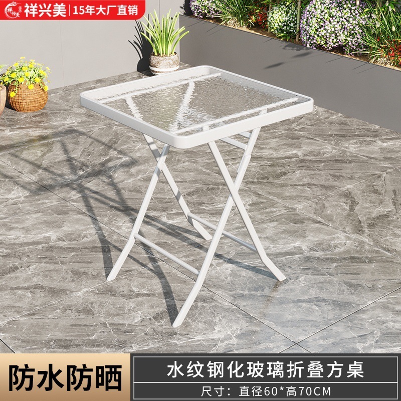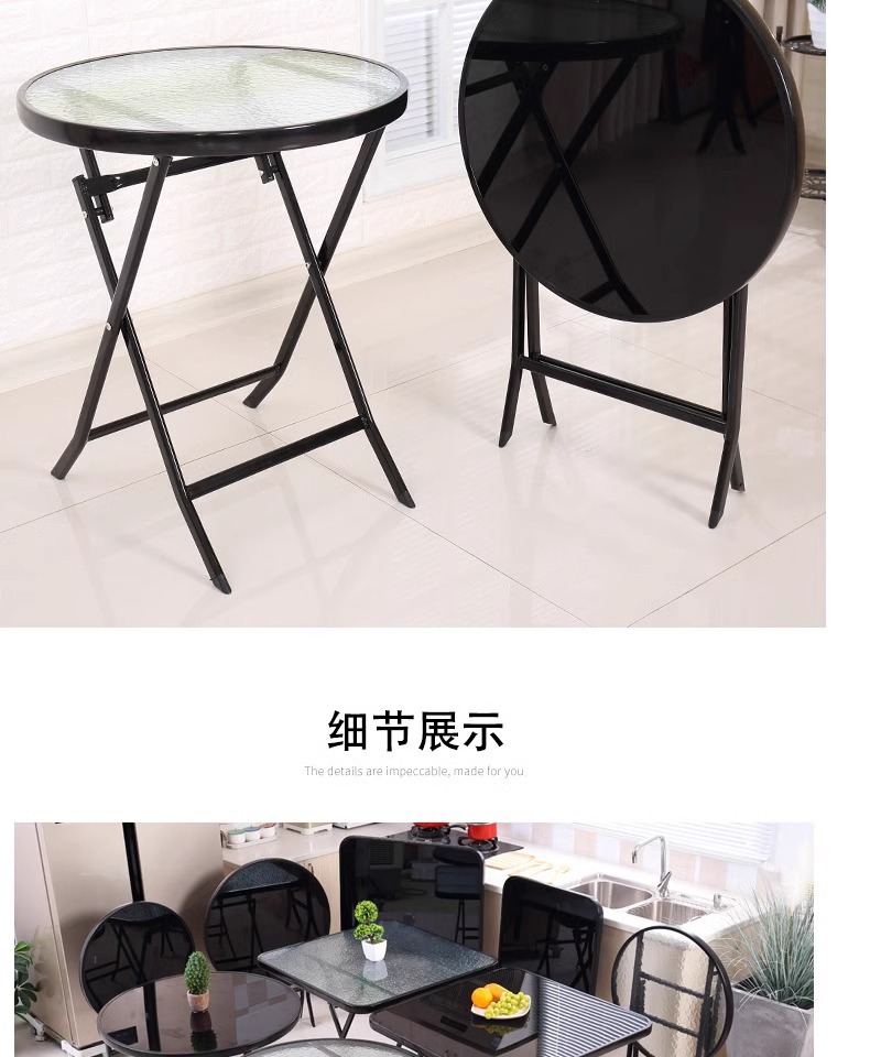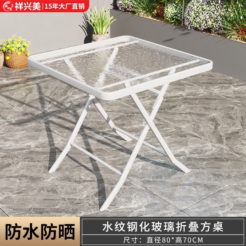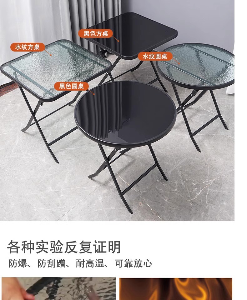 간단하고 휴대 가능한 강화 유리 테이블, 가정용 접이식 식탁, 발코니 테이블과 의자, 야외 레저 스톨 테이블스토어 가기