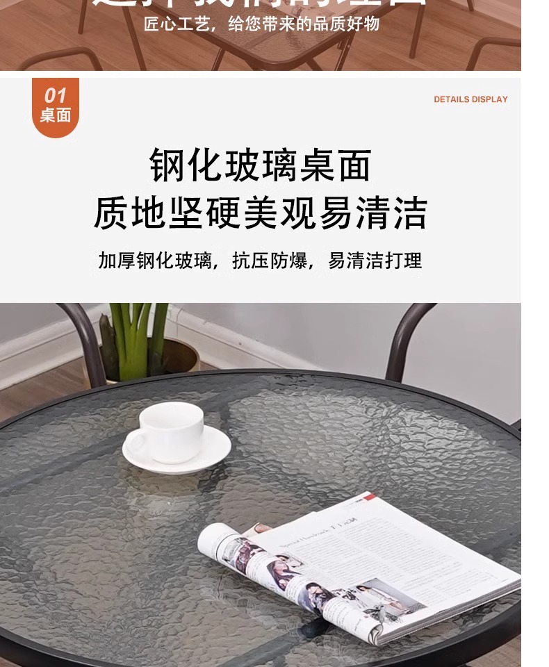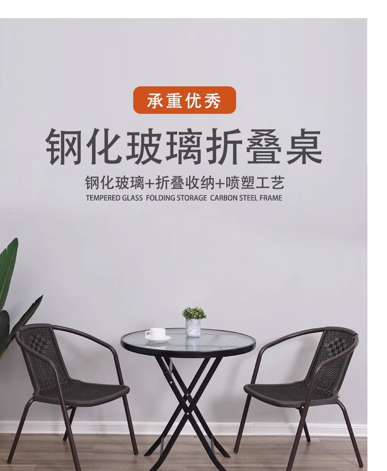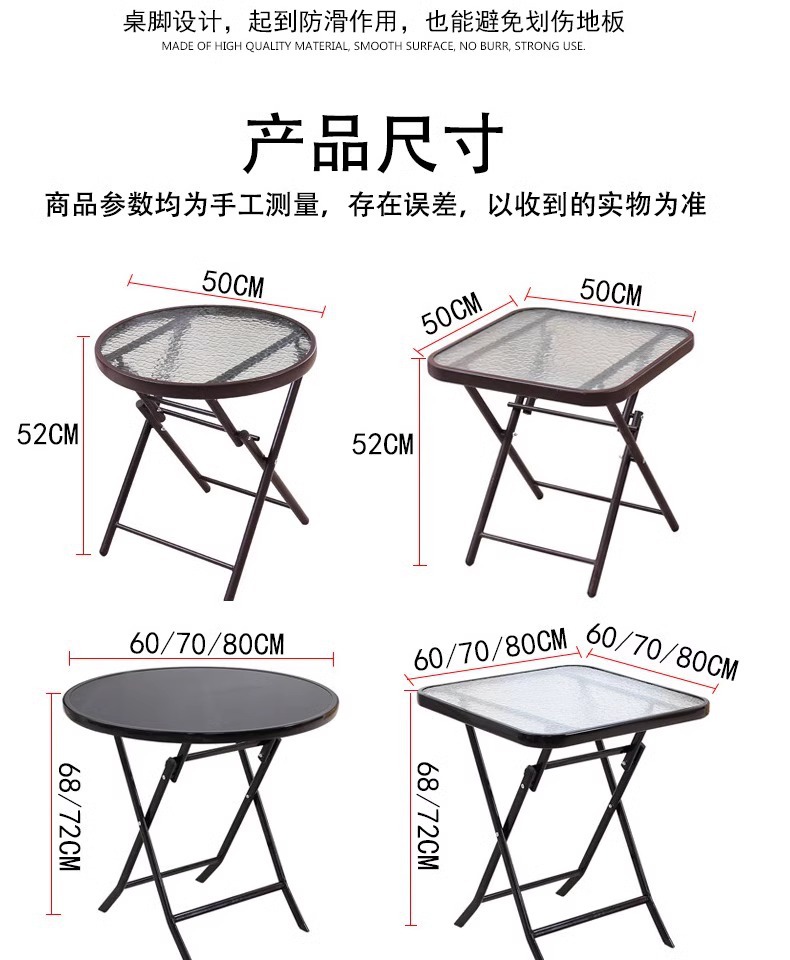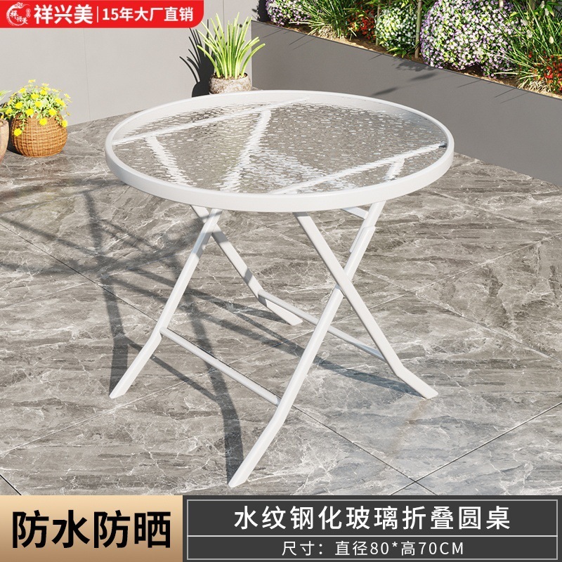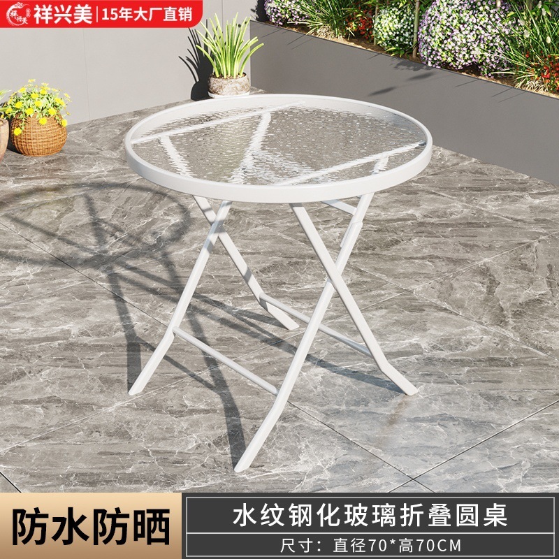 간단하고 휴대 가능한 강화 유리 테이블, 가정용 접이식 식탁, 발코니 테이블과 의자, 야외 레저 스톨 테이블스토어 가기