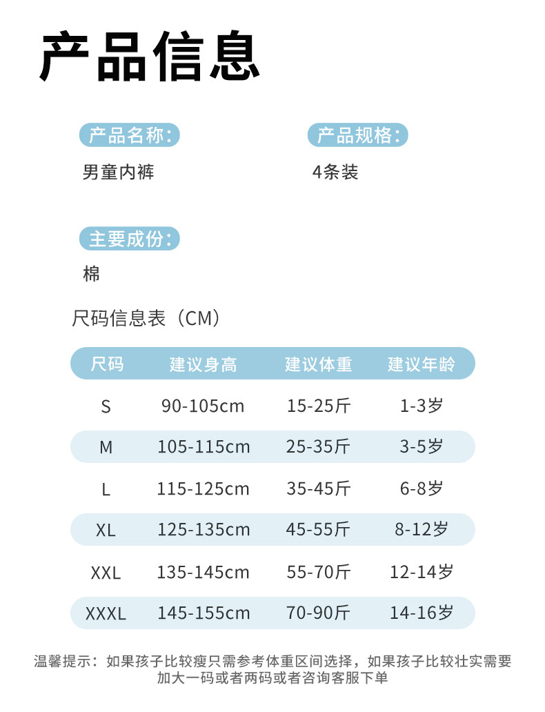 아동용 속옷, A급 순면 남아용 사각팬티, 항균, 중대형 아동용 남아용 사각팬티스토어 가기
