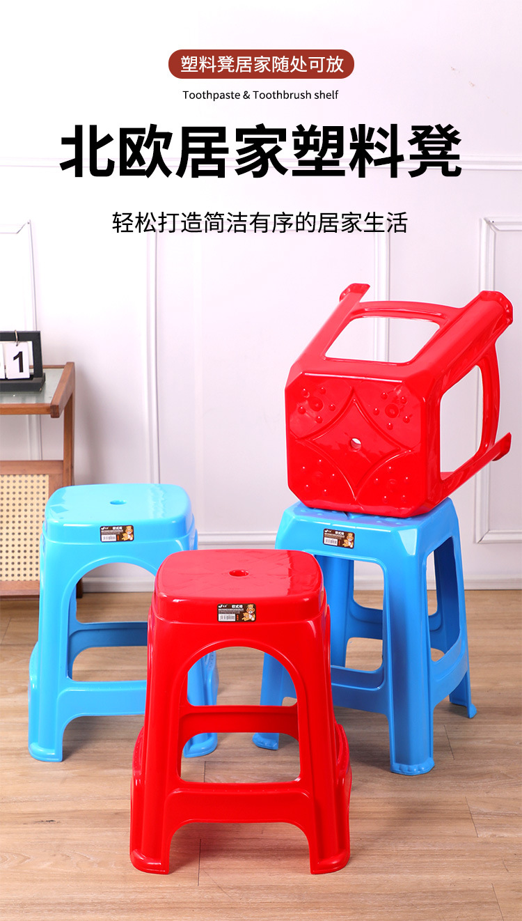 플라스틱 의자 가정용 두꺼운 높은 의자 스택 캐주얼 간단한 스타일 벤치 야외 높은 플라스틱 의자스토어 가기