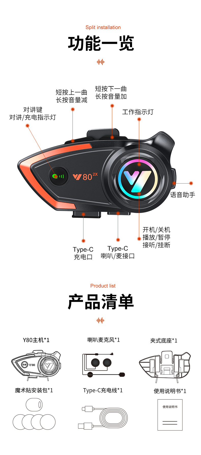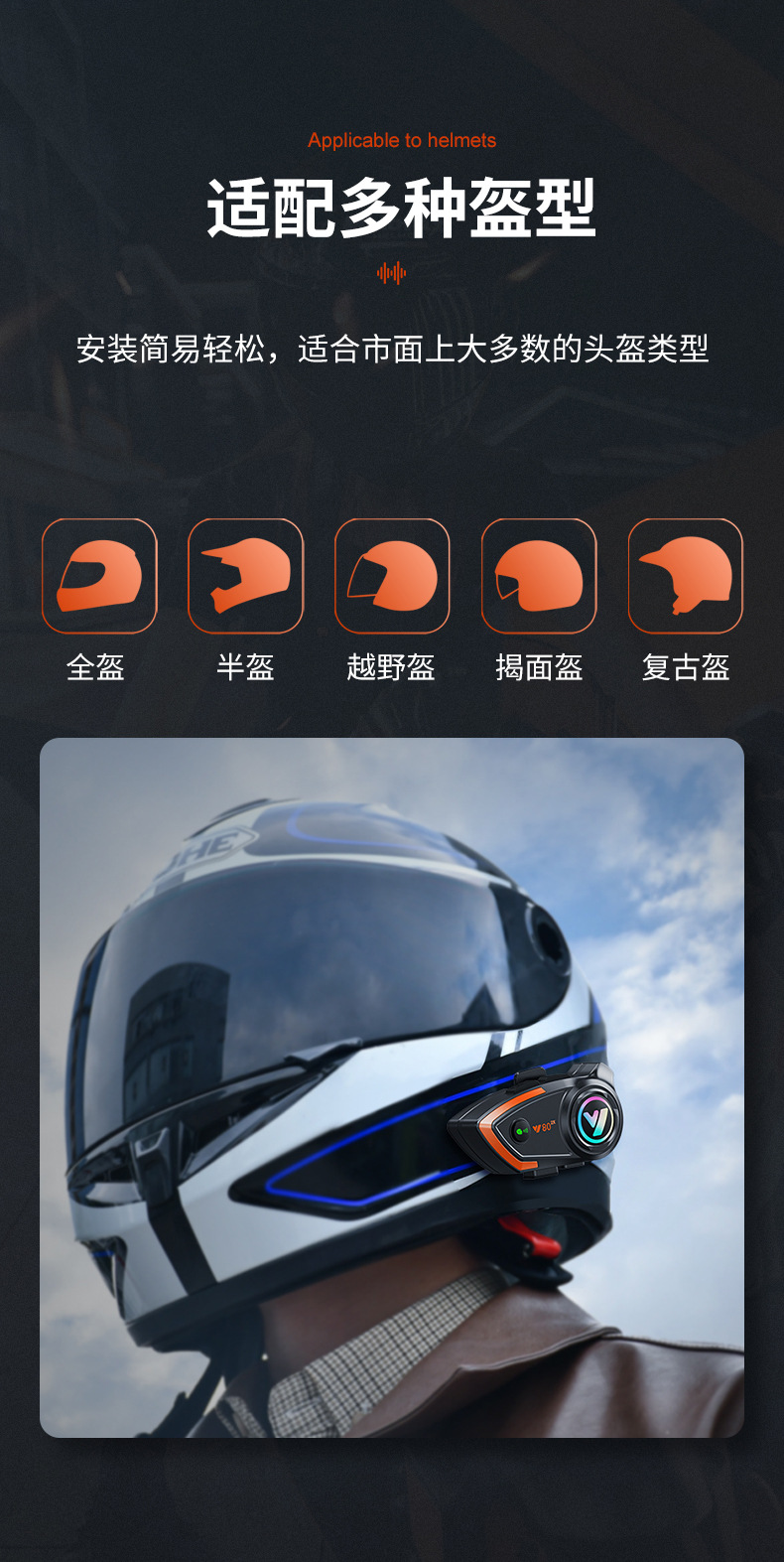 Y802x 오토바이 인터콤 헬멧 블루투스 헤드셋 800m 인용 인터콤은 타사 헬멧 헤드셋과 호환됩니다.스토어 가기