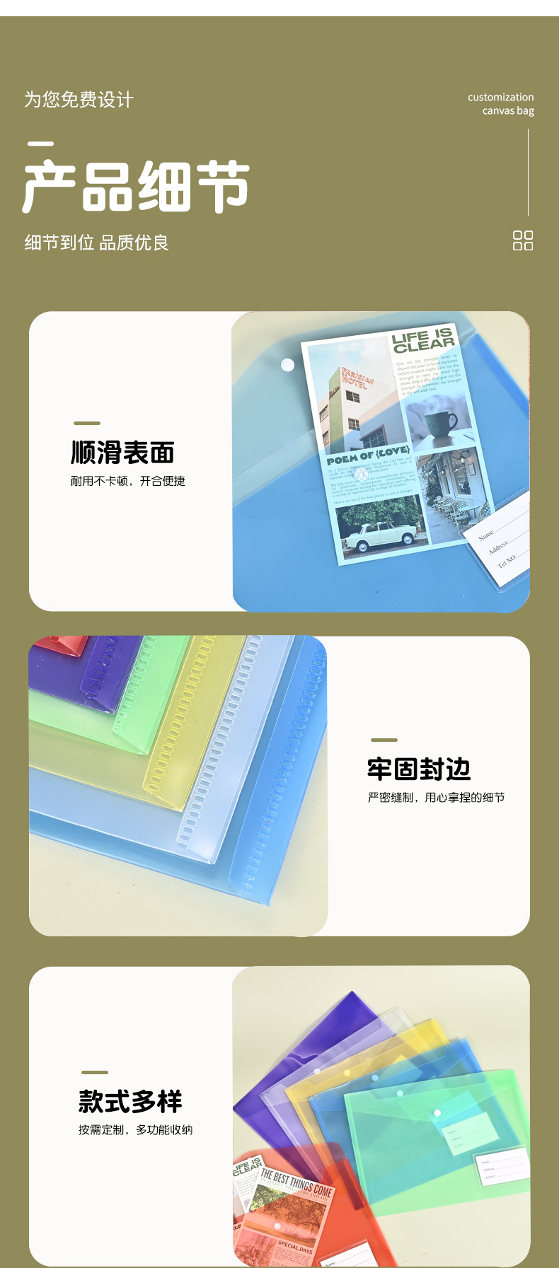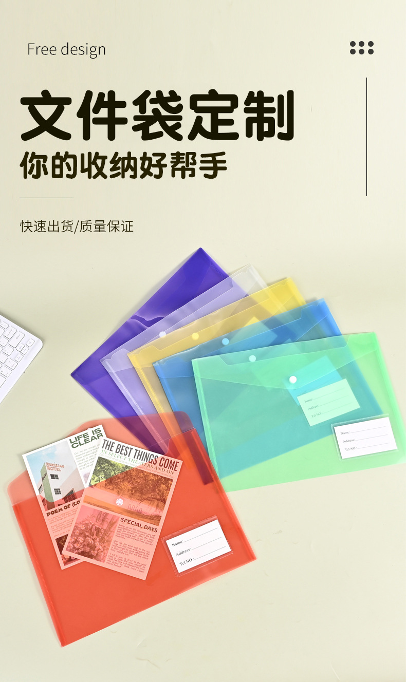 맞춤형 A4 파일 가방, 학생 시험지, 서류, 계약서 보관용 PP 플라스틱 파일 가방, 로고 인쇄 가능, A4 용스토어 가기
