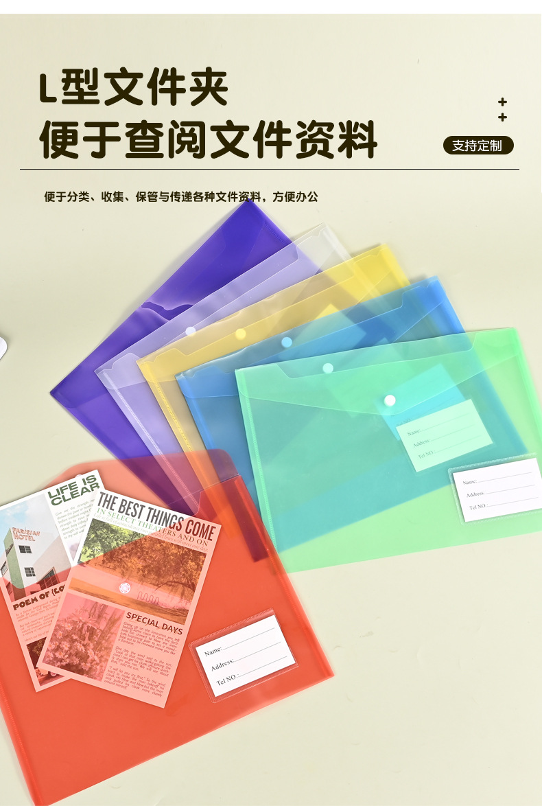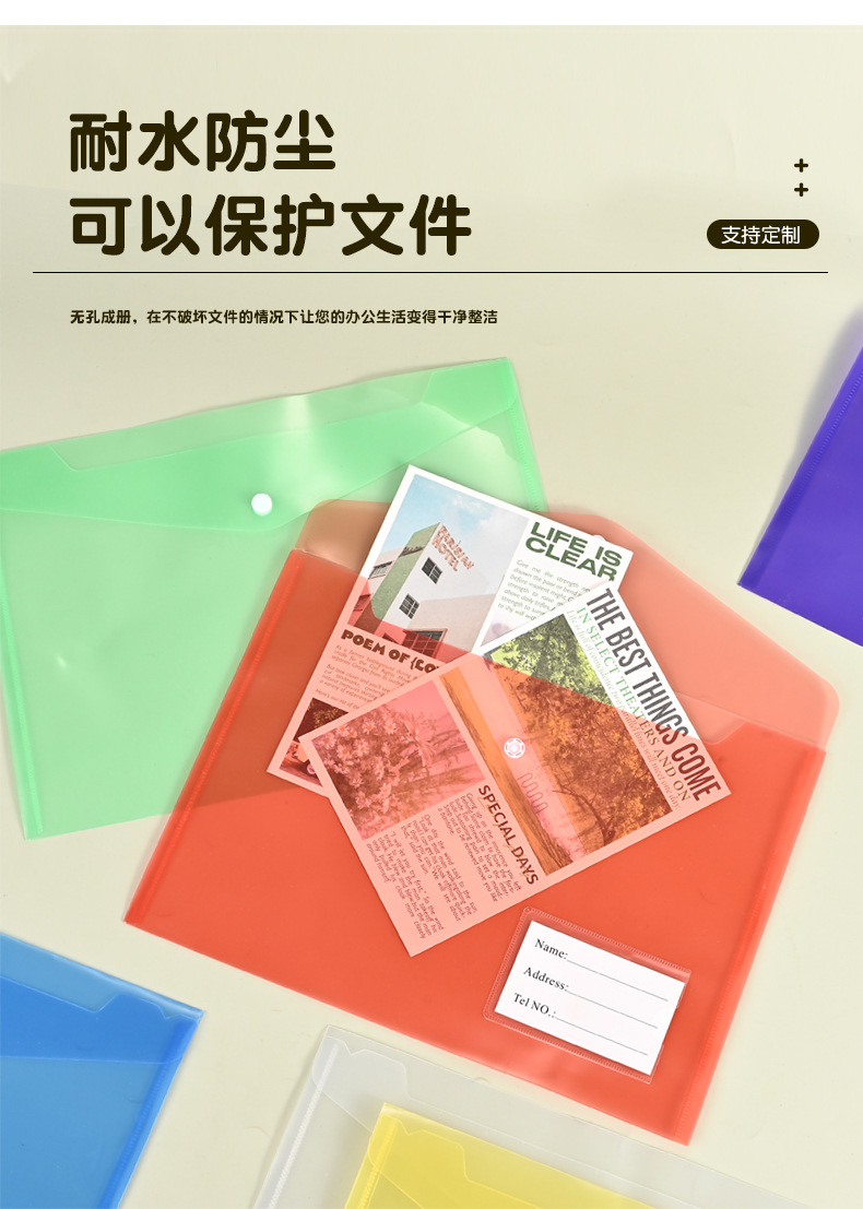 맞춤형 A4 파일 가방, 학생 시험지, 서류, 계약서 보관용 PP 플라스틱 파일 가방, 로고 인쇄 가능, A4 용