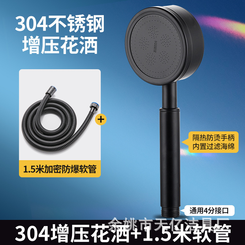 • 304 스테인레스 스틸 [블랙] 가압 샤워기 + 1.5m 방폭 호스