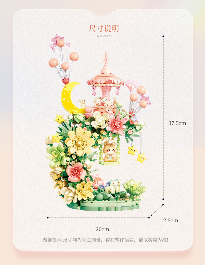 Senbao 611082 빌딩 블록 꽃의 얼굴 아래 달 꽃 교육 빌딩 블록 조립 장난감 소녀 선물 빛 도매
