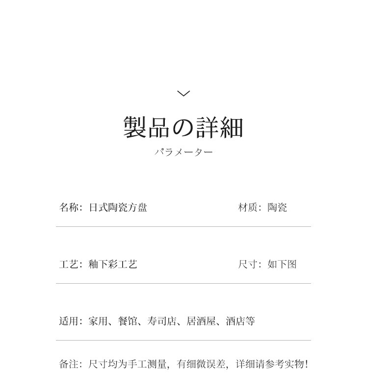 사중주 세라믹 스퀘어 플레이트 상업 요리 바베큐 작은 요리 스낵 요리 일본 광장 접시 레스토랑 식기 식기 가정용 도자기 요리스토어 가기