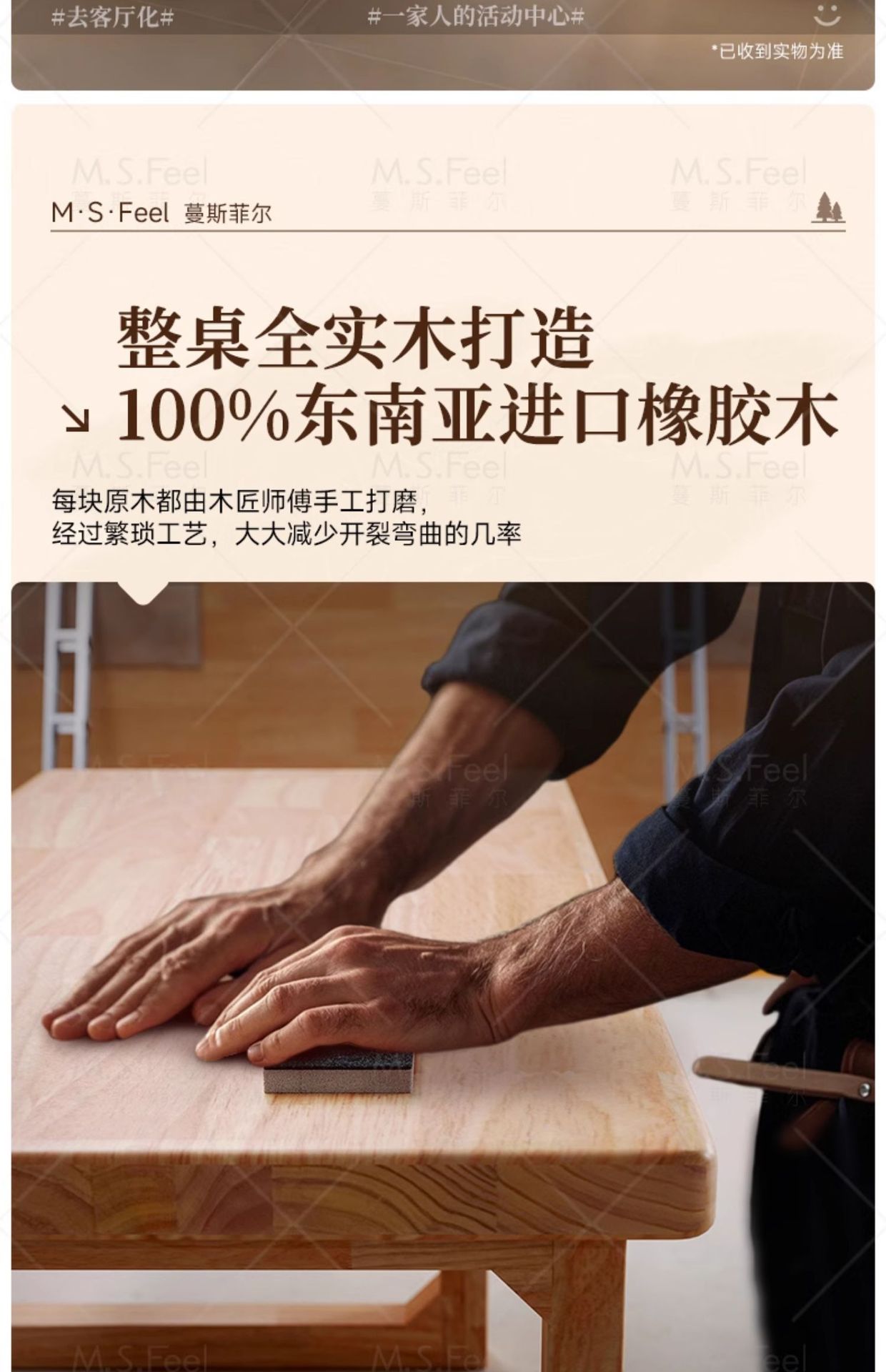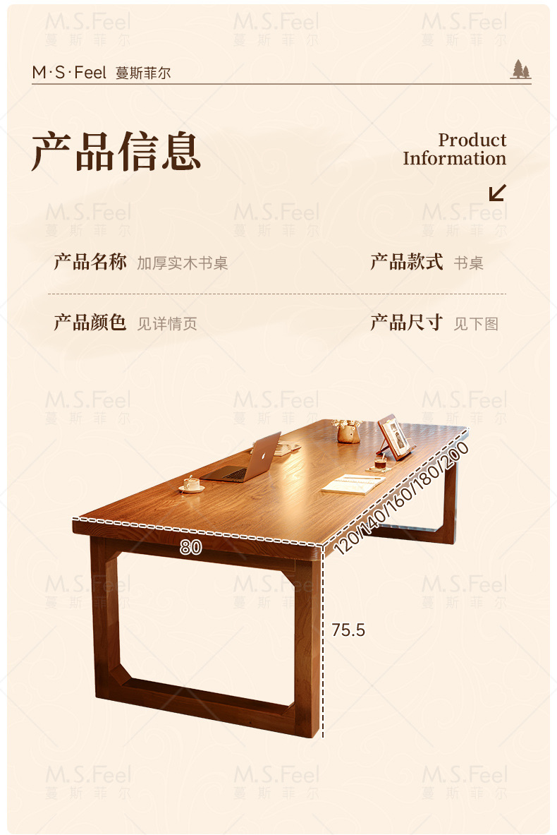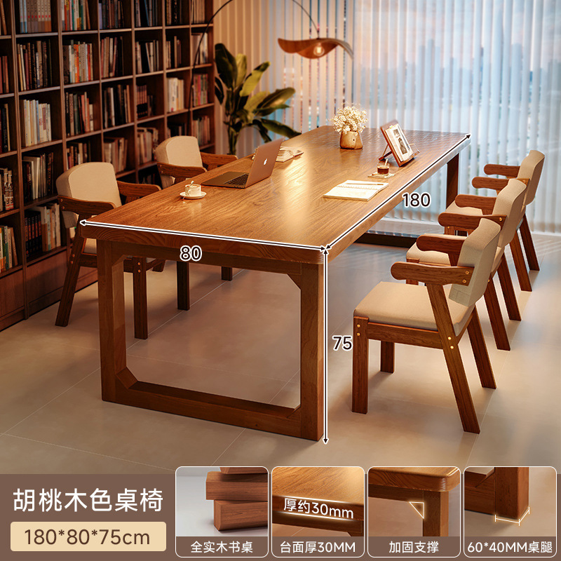 • [폭 업그레이드 80cm 라이트 월넛 컬러 싱글 테이블 200*80cm 난양 수입 고무나무