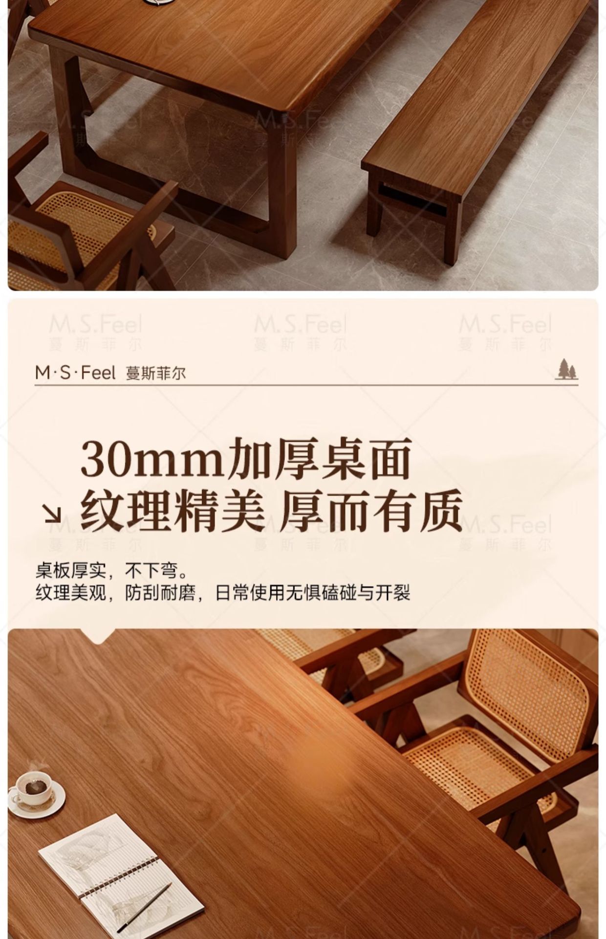• [고무나무 테이블과 의자 4종 세트] 벚나무 색상 140*80cm 가족 부모-자식 학습 테이블 선호