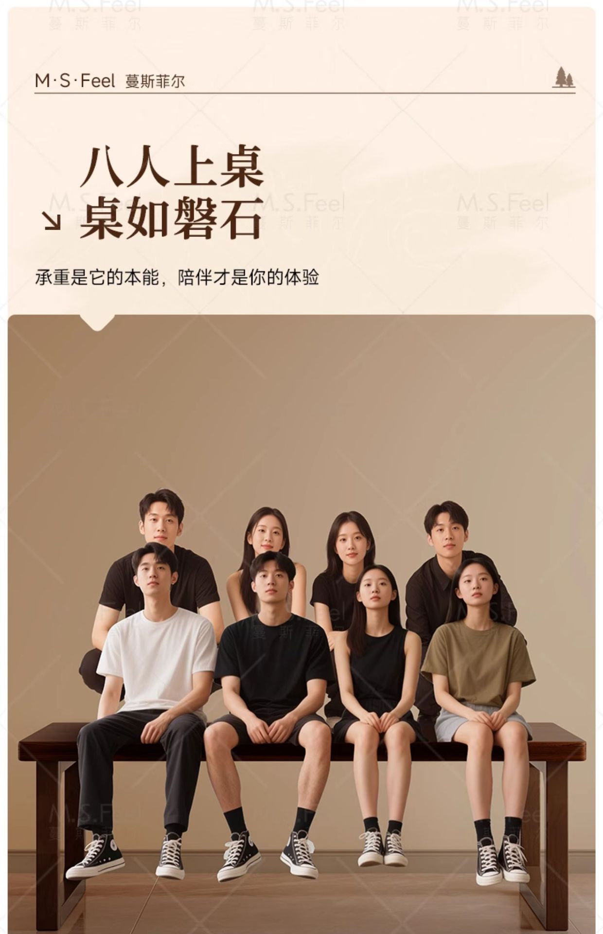 • 테이블 1개와 의자 5개[고무나무 테이블과 의자 조합] 라이트 월넛색 180*80cm