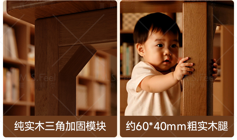 • [폭 80cm로 업그레이드] 연한 호두색 싱글테이블 120*80cm 옆으로 앉아 부모와 아이가 무릎을 만지지 않고