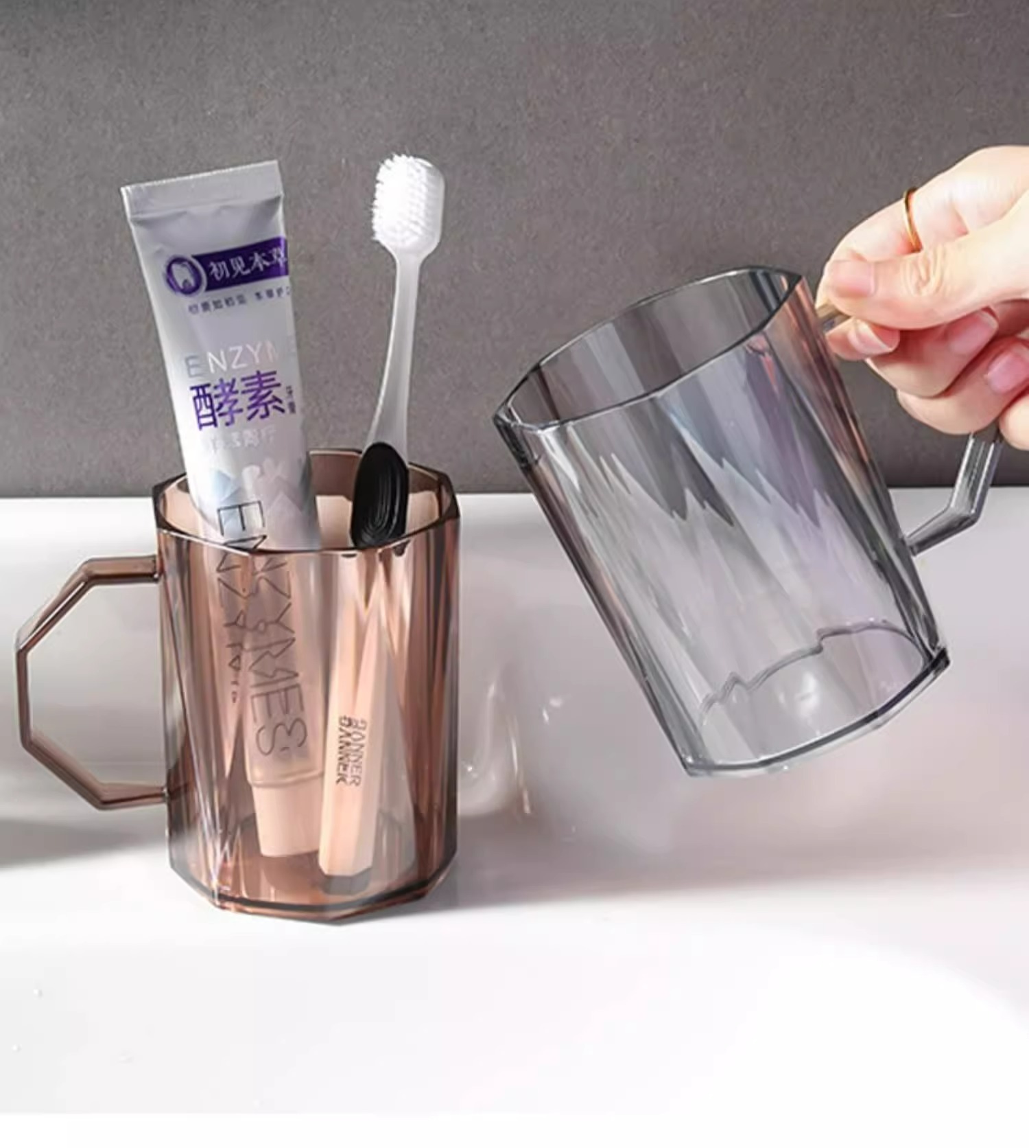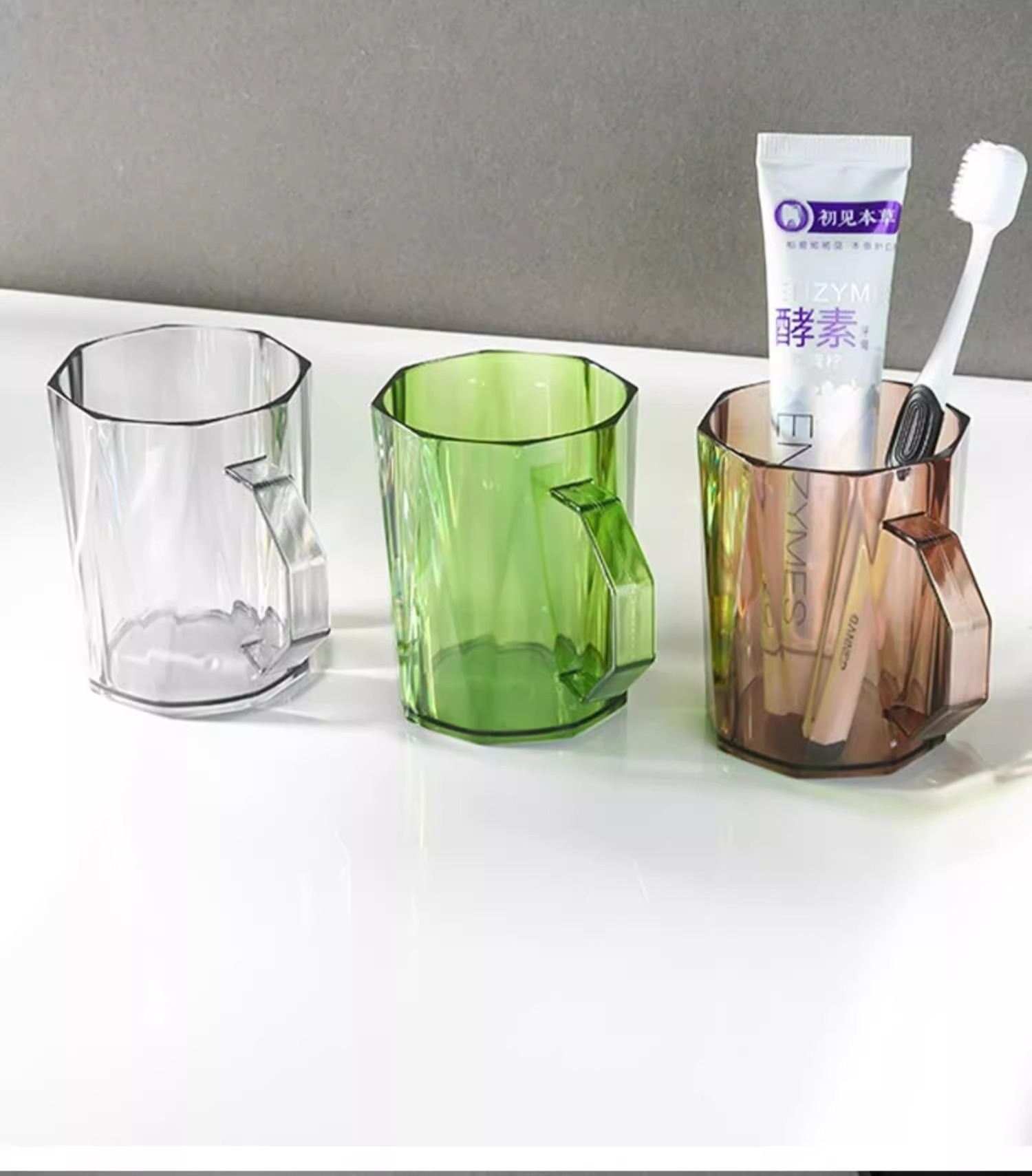 브러쉬 컵 가글 컵 가정용 3 입 가글 컵 하이 엔드 이쑤시게 컵 세트 투명 라이트 럭셔리 이쑤시게 컵스토어 가기