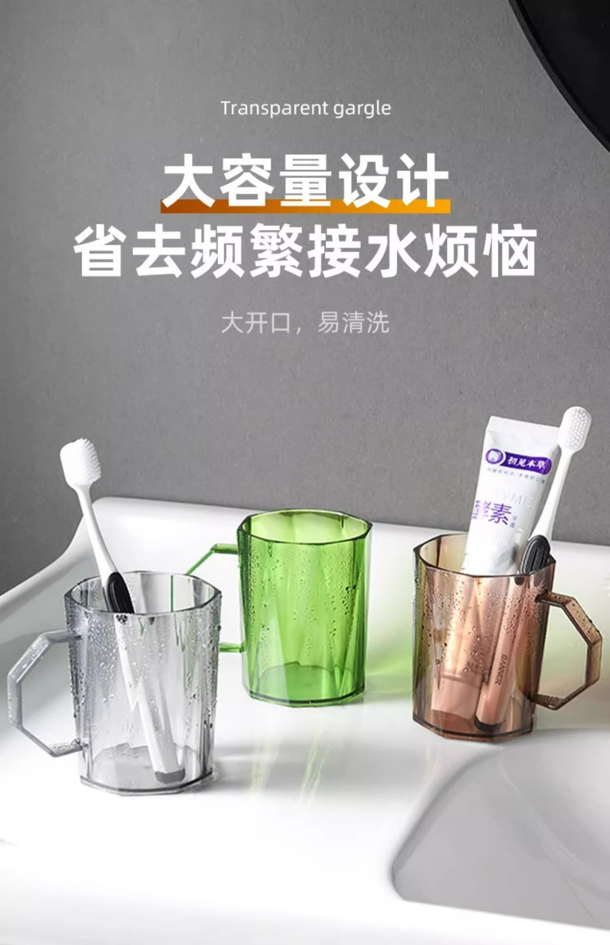 브러쉬 컵 가글 컵 가정용 3 입 가글 컵 하이 엔드 이쑤시게 컵 세트 투명 라이트 럭셔리 이쑤시게 컵