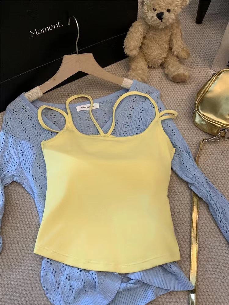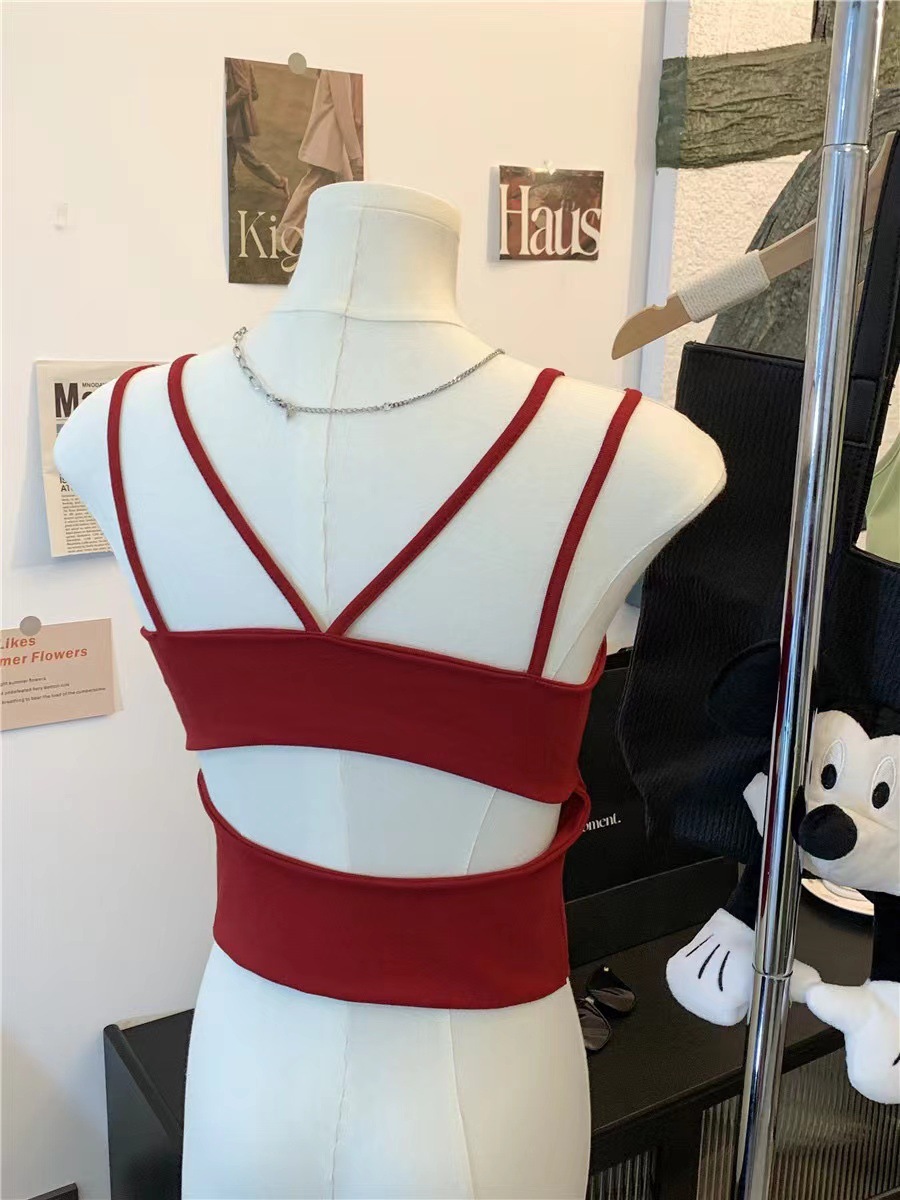 섹시한 핫걸 더블 숄더 스트랩 캐미솔 여성용 가슴 패드 바닥 슬리밍 크로스백 탑