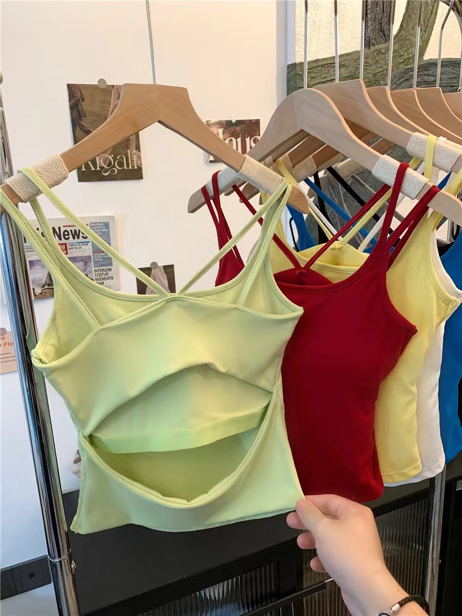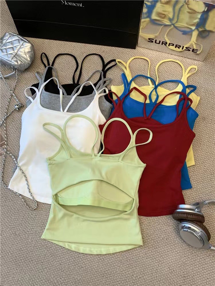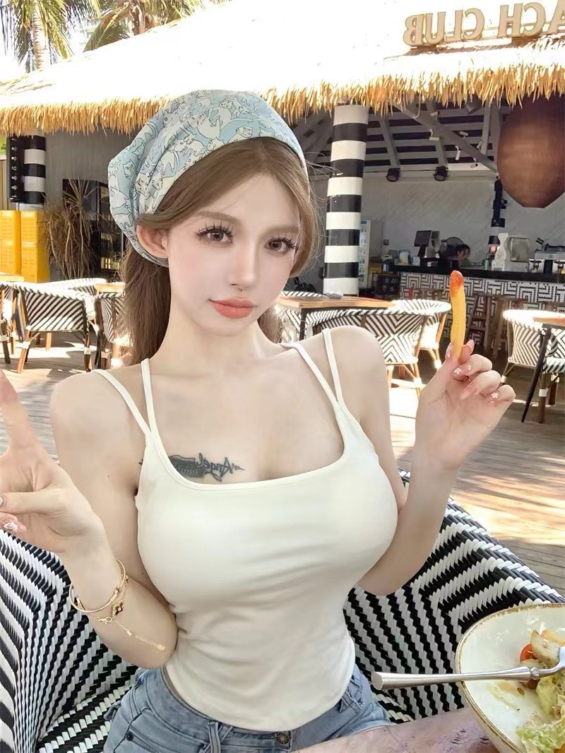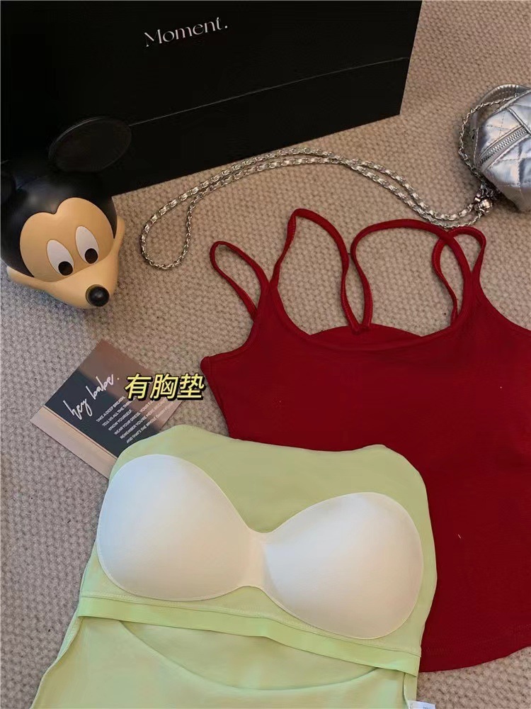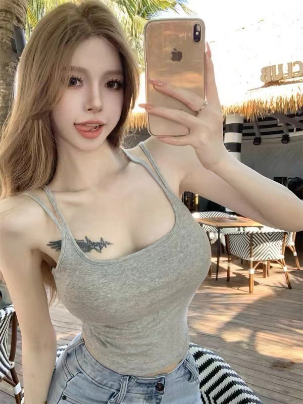 섹시한 핫걸 더블 숄더 스트랩 캐미솔 여성용 가슴 패드 바닥 슬리밍 크로스백 탑스토어 가기