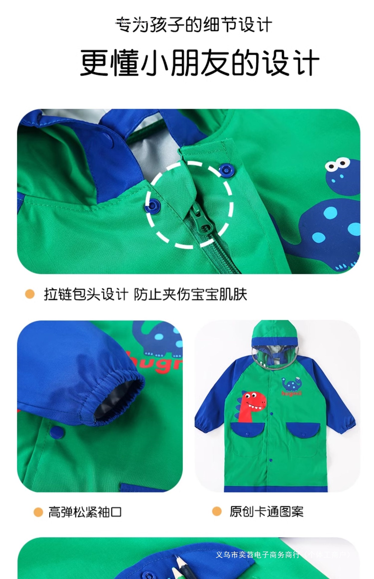 초등학생을위한 어린이 비옷 소년 모자 브림 여학생 판초가있는 스쿨백 방수 대형 학교 전신