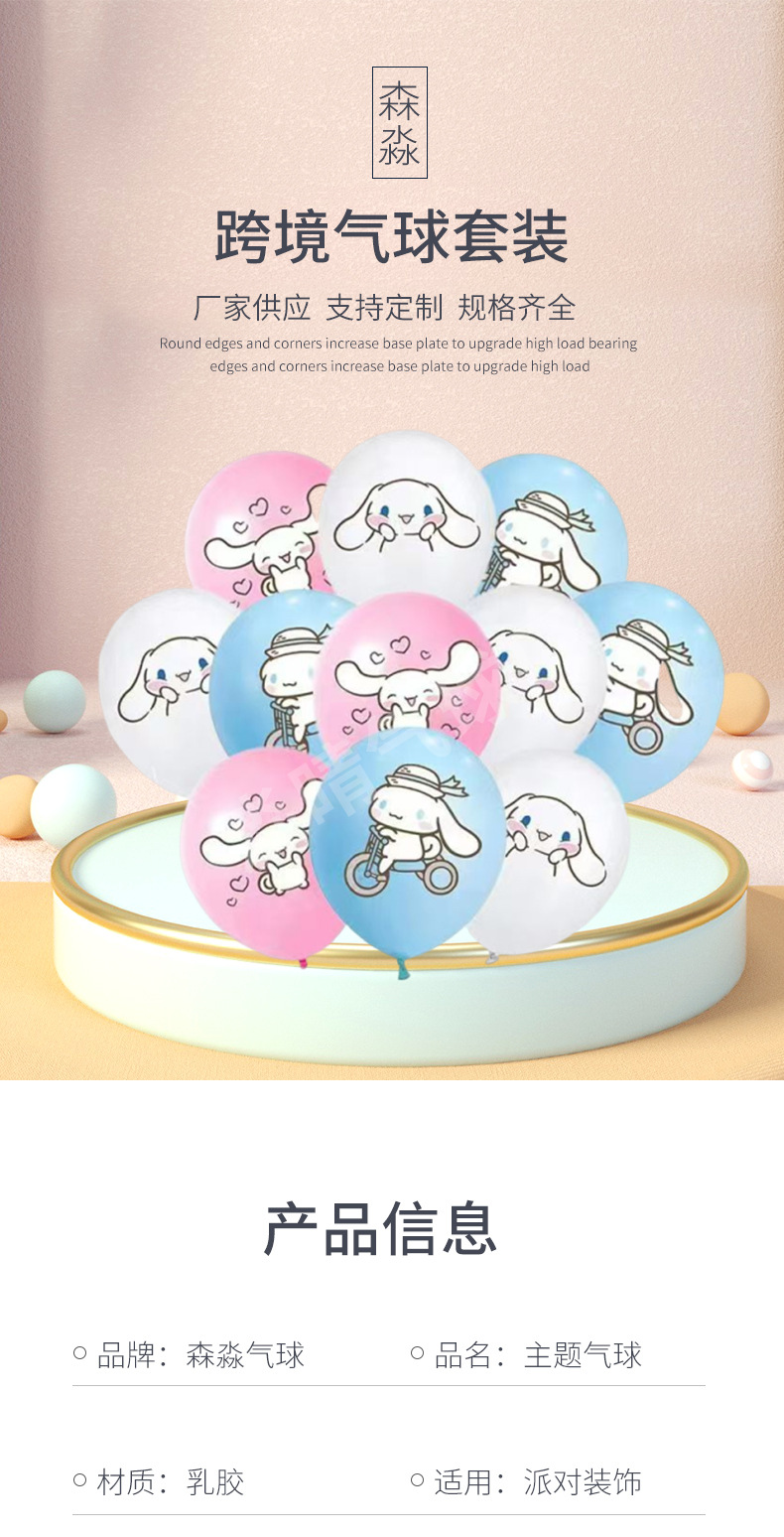 뜨거운 판매 12inch 계피 개 라텍스 공 산리오 테마 생일 파티 한 살짜리 연회 어린이 만화 풍선 도매