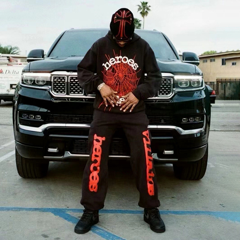 2025 봄, 가을 새로운 남성 패션 후드 플레어 바지 정장 스포츠 트렌디 브랜드 커플 후드 티셔츠스토어 가기