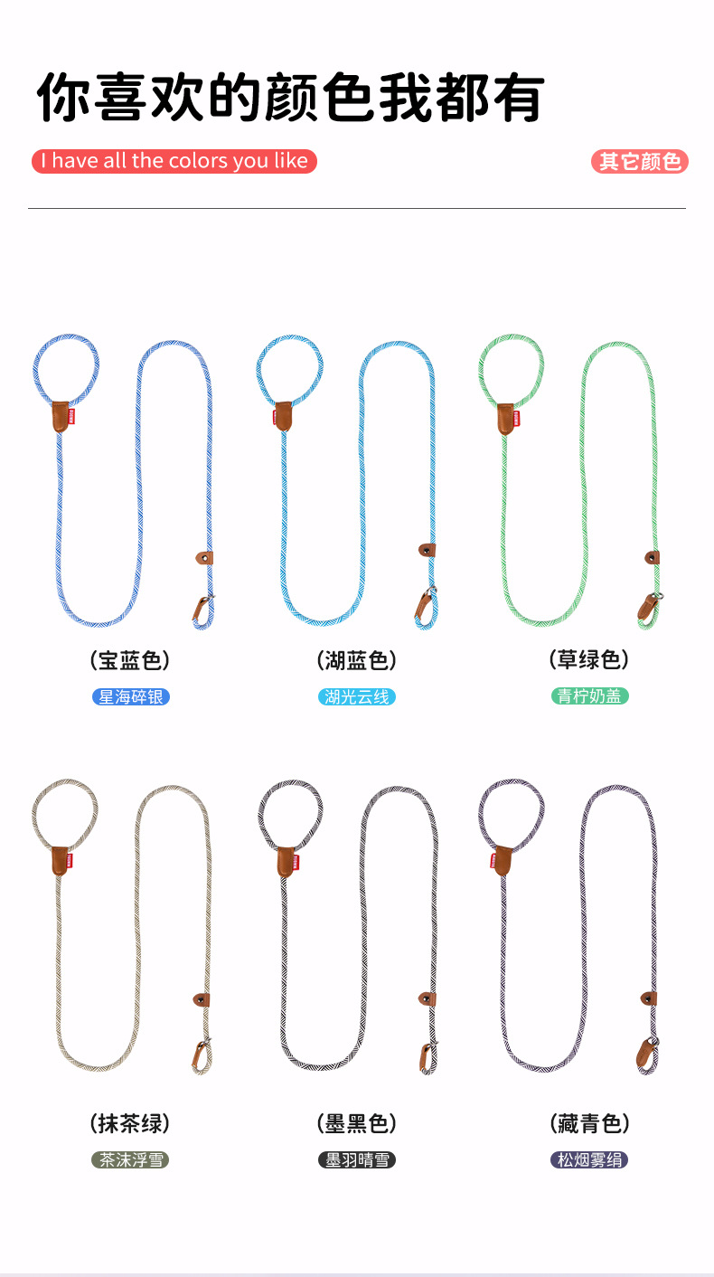 손을 조이지 않는 컬러풀한 자카드 P 로프 개 가죽끈, 나일론 가죽 P 체인, 방폭 및 탈출 방지 애완견 산책용 가죽끈스토어 가기
