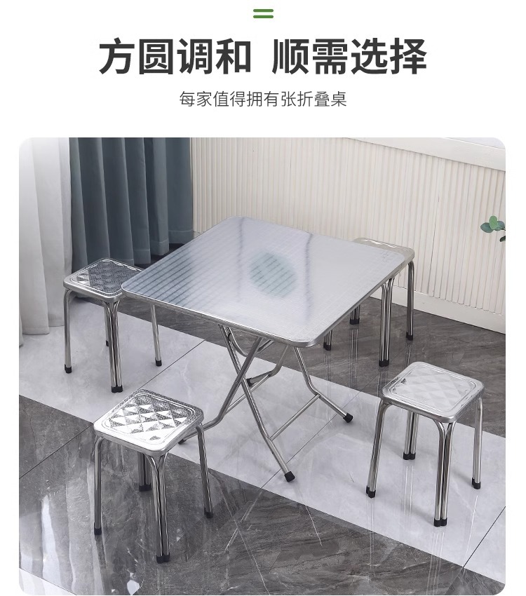 두꺼운 스테인레스 스틸 식탁 가정용 원형 식탁 접이식 테이블 야외 식사 사각형 테이블 접이식 테이블 원형 테이블