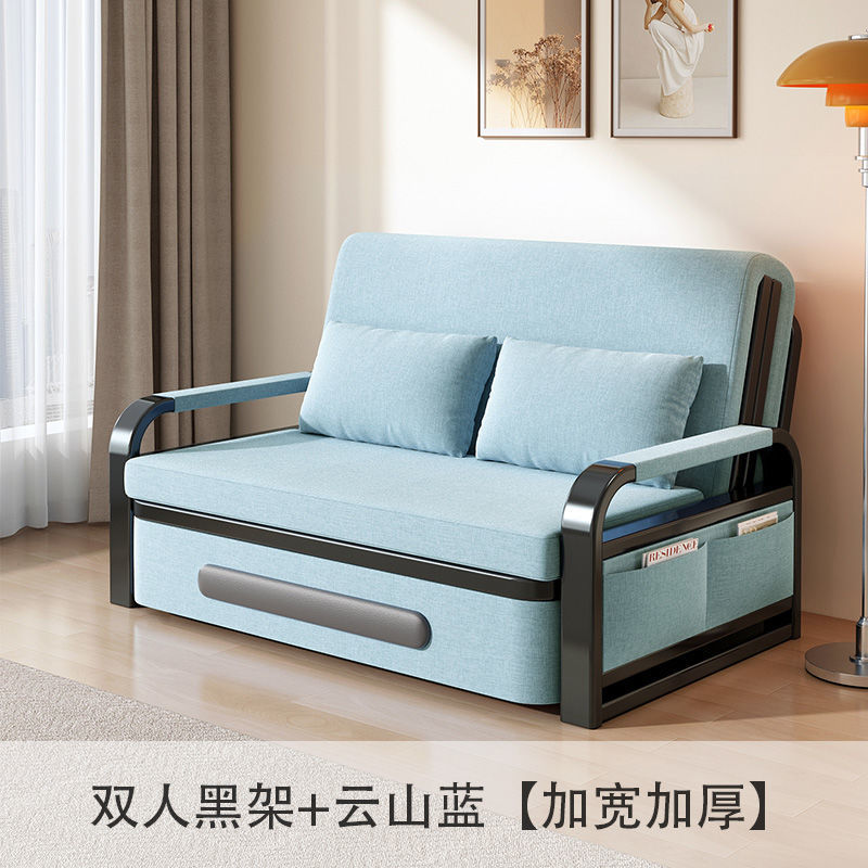 • 라이트 블루 블랙 프레임 + 수납형 [베개 무료] 길이 1.9m