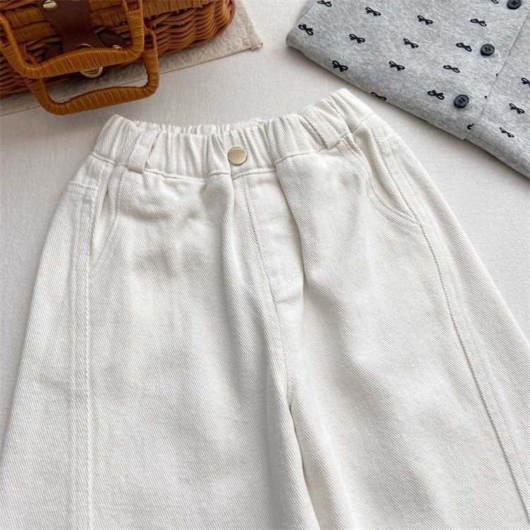2025 여자 봄, 가을 새로운 스타일 흰색 청바지 한국 스타일 와이드 레그 팬츠 세련된 루즈 스트레이트 팬츠 트렌디스토어 가기