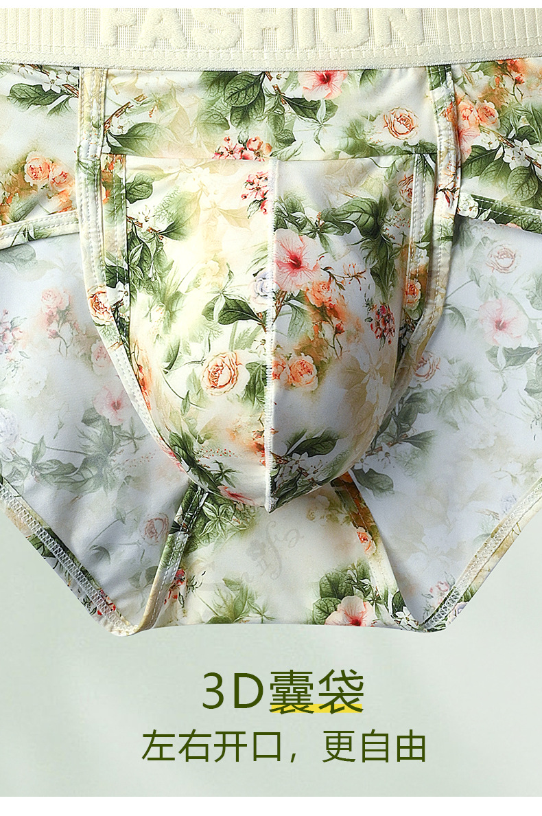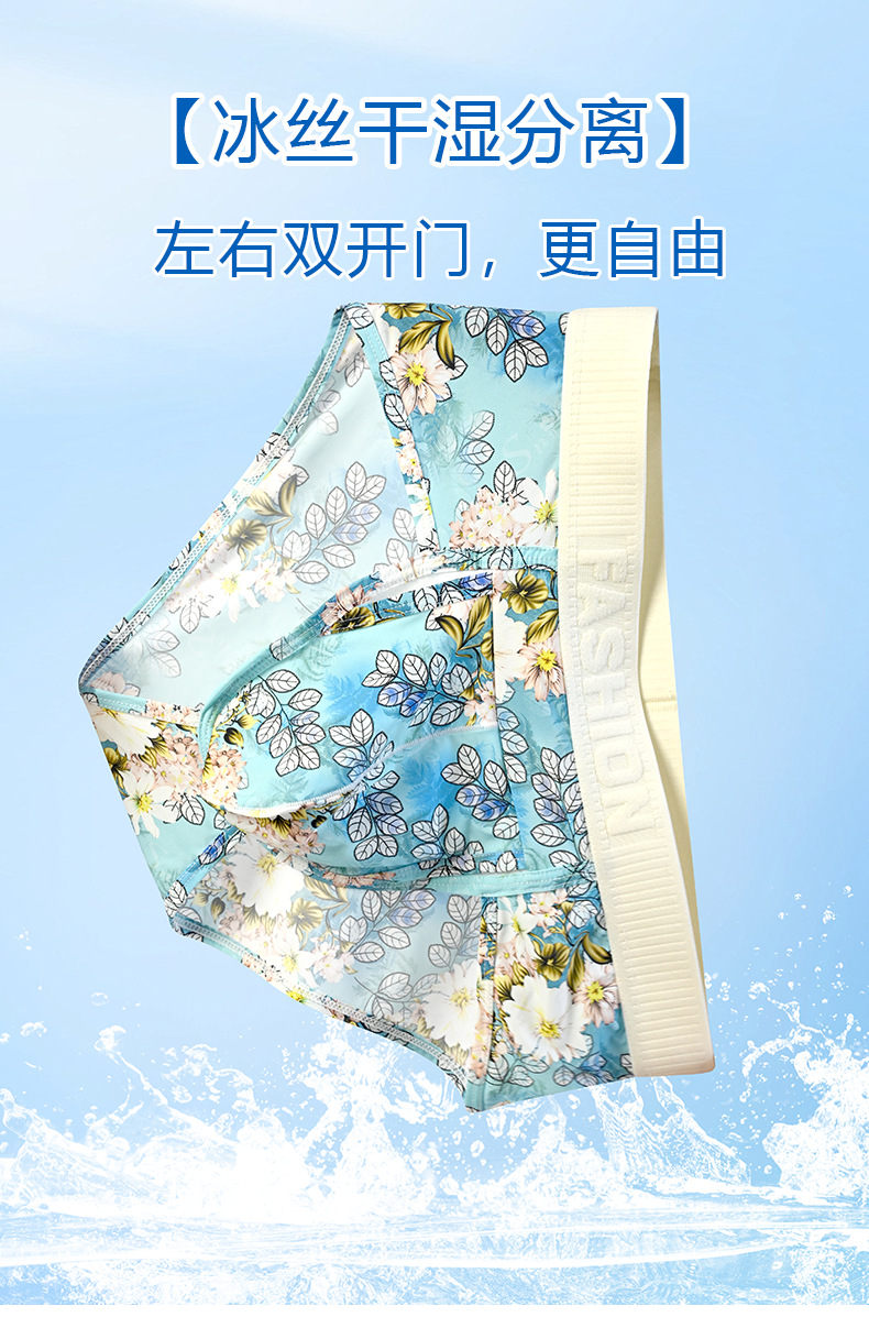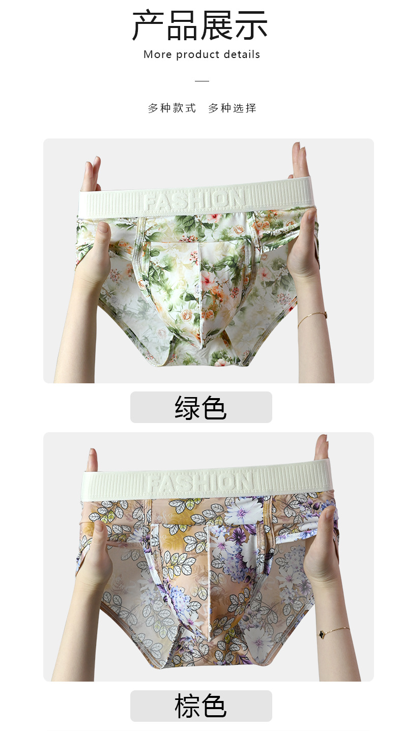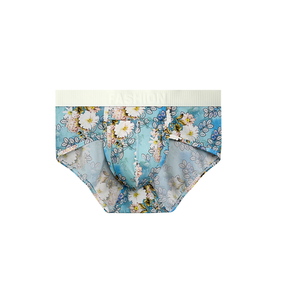 여름 아이스 실크 남성 속옷 tracless 인쇄 낮은 허리 섹시한 큰 삼각형 빛 청소년 삼각형 반바지 머리스토어 가기