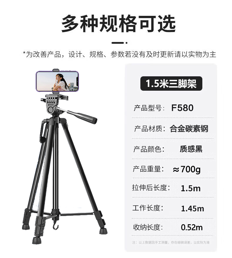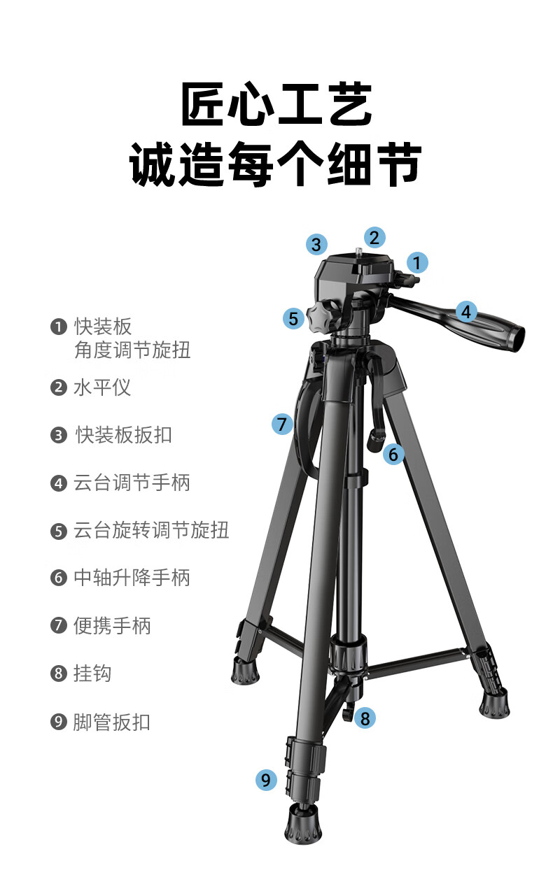 • 1.5m [볼드 카본 스틸] 짐벌 삼각대/휴대폰 카메라 유니버설 + 수납가방